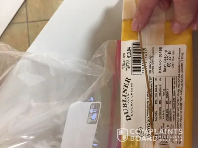 Today 03/10/2018, I purchased from Costco Dubliner 100% Natural Cheese with an expiration date of 09/27/2018. Got home, opened the package and there was black mold everywhere! I have heard stories about fish and other products but I have never experienced it myself until today. Our health and our family's health in not important, as long as they are making money!