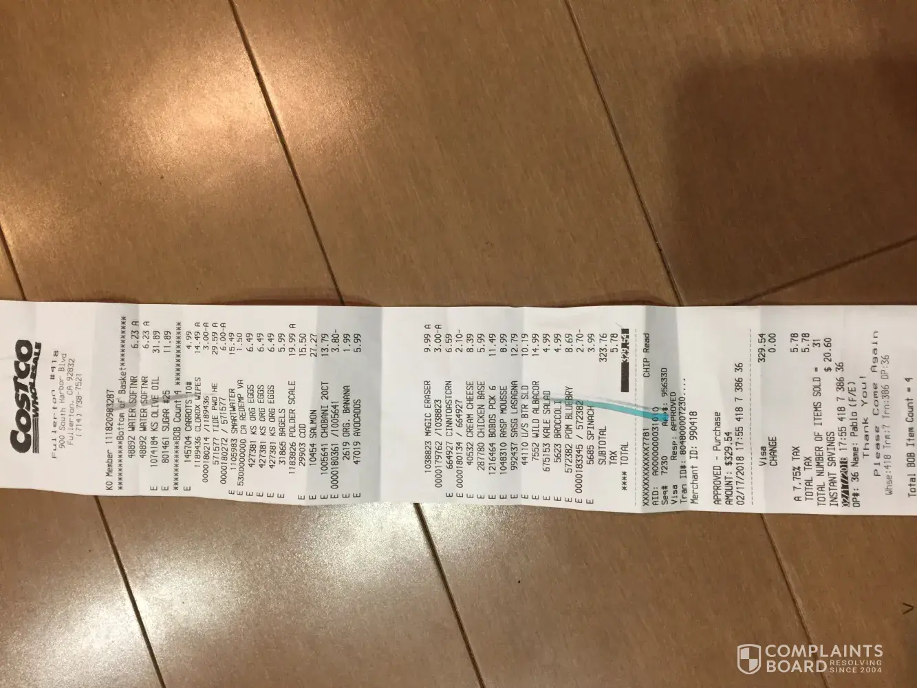 On February 17, 2018 I bought the Fresh wild pacific COD at Costco (Location: 900 South Harbor Blvd., Fullerton, CA 92832) for dinner on around 5:xx pm.