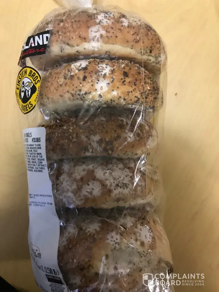 I recently purchased some bagels from Costco on (1/10). About 4 days after the purchase, I noticed that the bagels began to mold at a great rate despite being kept in a clean and sealed environment. This is simply unacceptable. I don't feel safe purchasing pastries from Costco anymore if this is the quality that you are providing as if I didn't notice I could have easily become very sick or even worse. I would like a refund on these bagels as I was not able to eat any of them. I have attached photos of the bagels below.