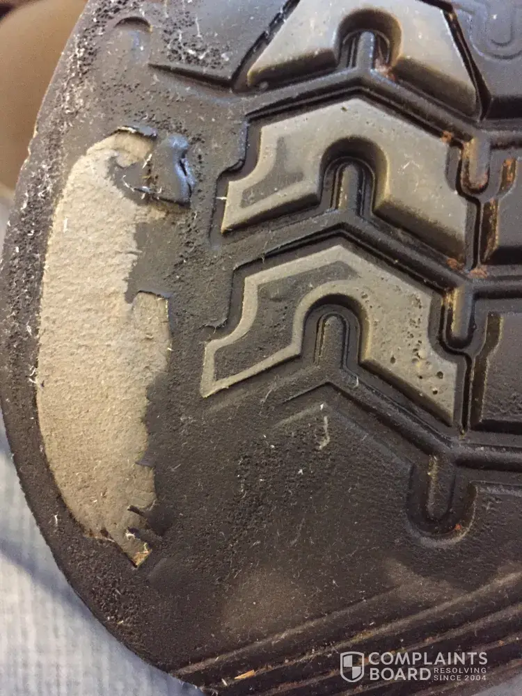 I bought K-Guard shoes before Christmas at the Durham, NC, store. They were handsome and seemed ruggedly constructed. Today (1/22/2018) I looked at the soles and they are worn through, even though I alternated wearing them with three other pairs. No one should buy them! They are awful. The top of the shoes looks alright but the black sole is a thin covering that will disappear with almost no use. I am requesting a refund.