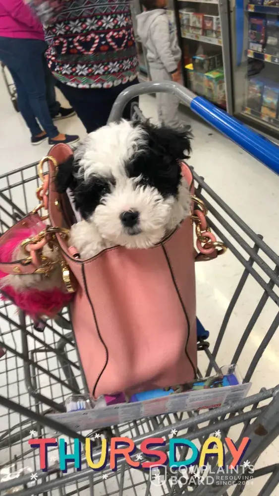 entering the store with a teacup puppy