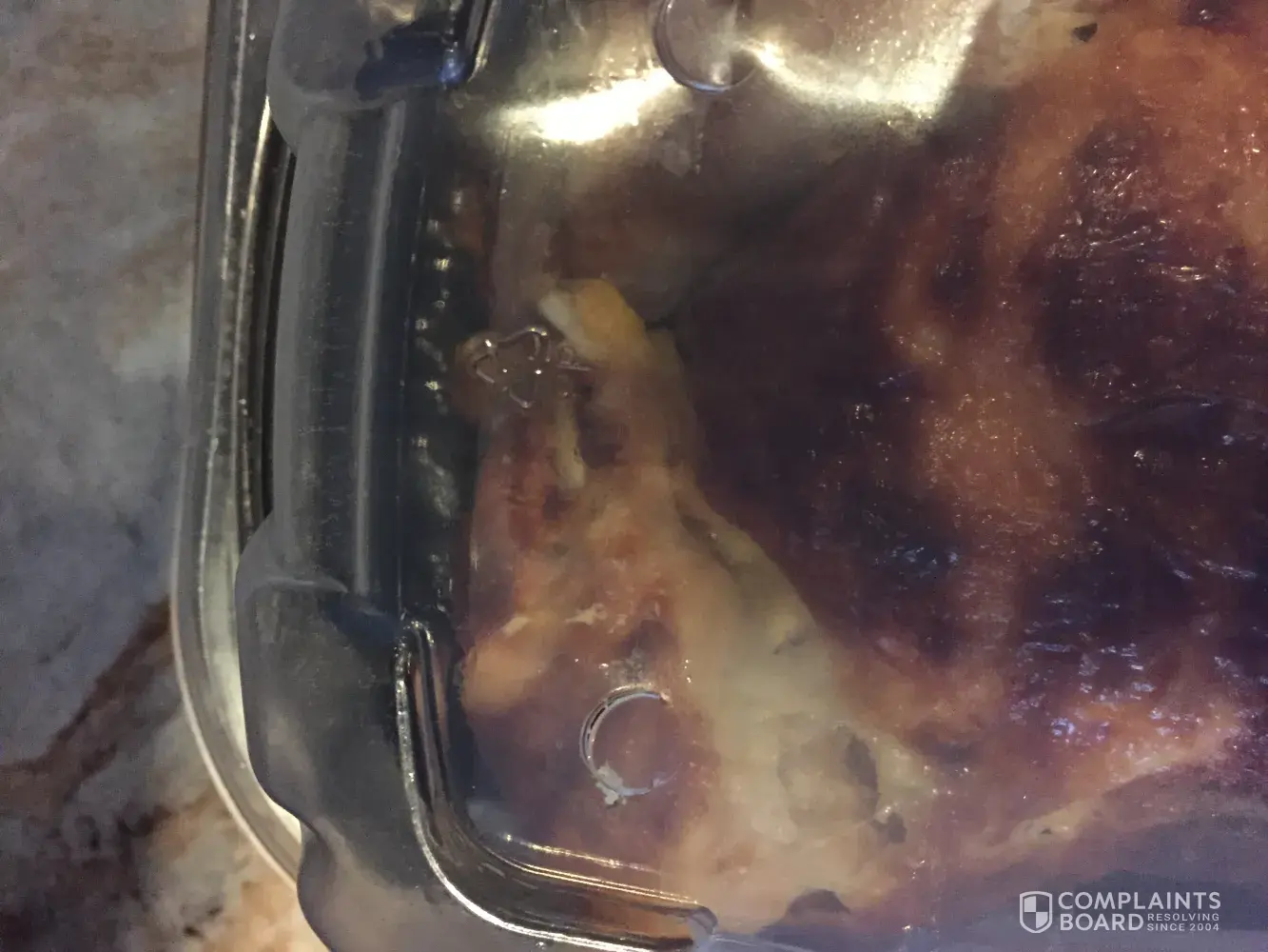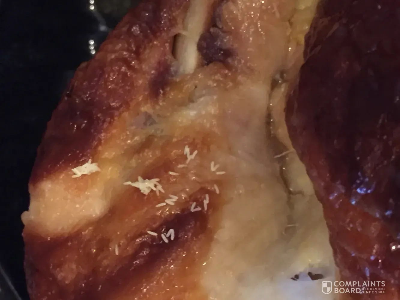 I bought the roast chicken yesterday, and when I opened the box, I found out some weird small white granular stuff on the chicken. So I went online and did some research to see what exactly it is. I found out that these are flies eggs. I don't know how the eggs appear on the chicken, but it is absolutely disgusting. I felt sad that I found this in Costco just because I used to trust this place, but I probably will never buy that again.