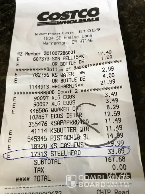 Purchased $33.89 worth of Steelhead. When opening the product to prepare for dinner discovered the fish was not fit for consumption. The product had a strong odor and slight slime covering the fish.