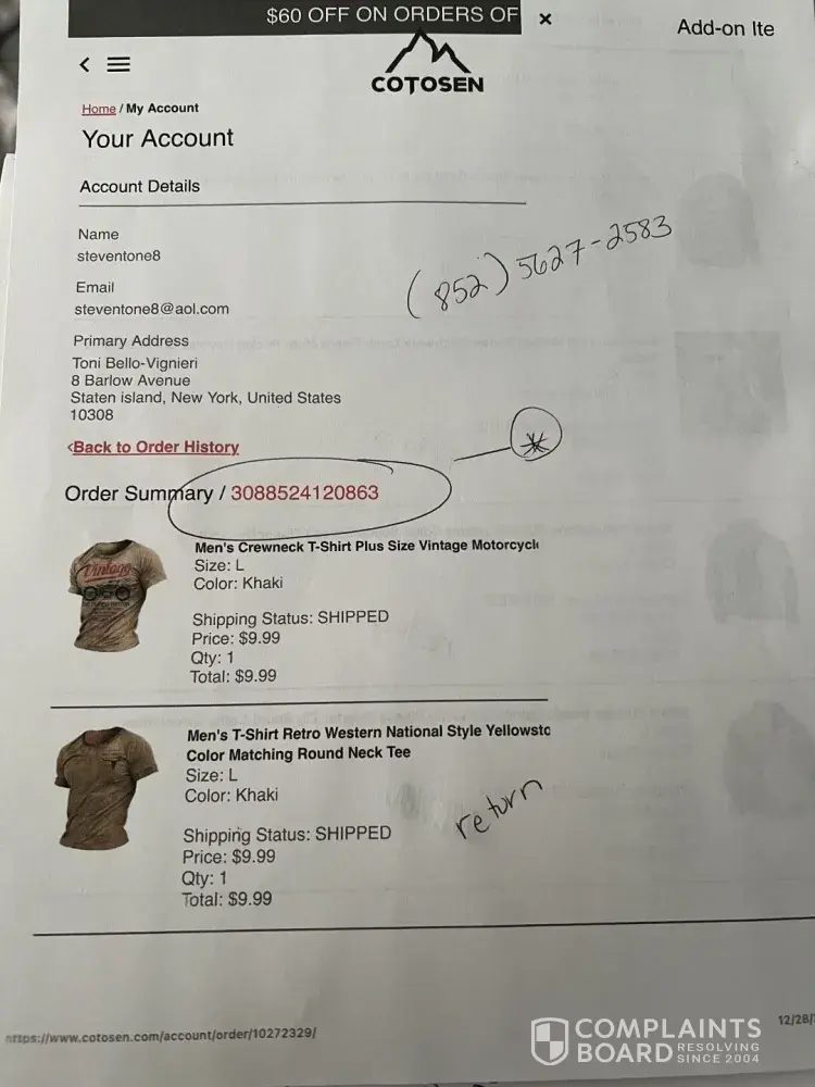 Cotosen: The Worst Clothing Company I've Dealt With - Buyer Beware!