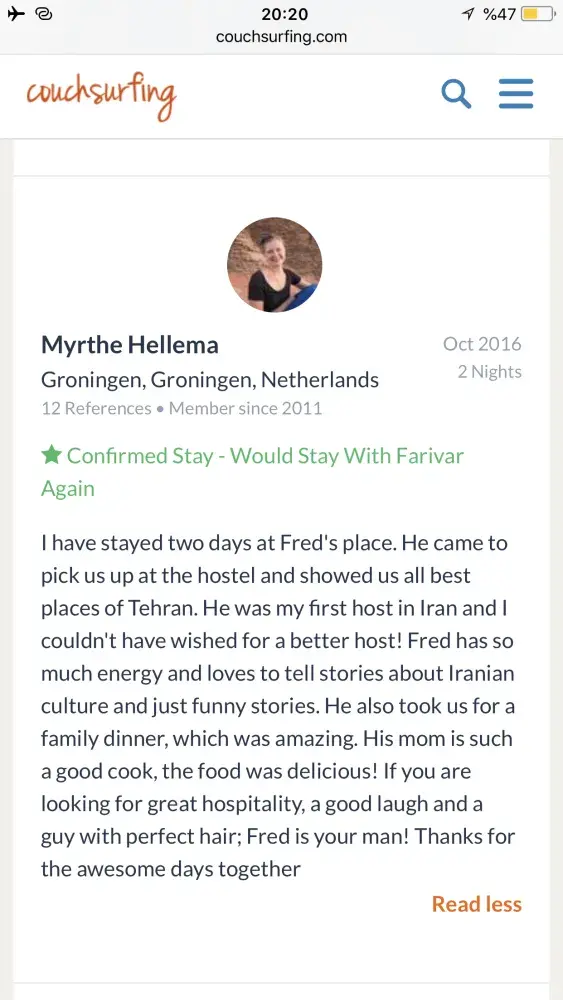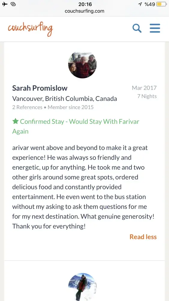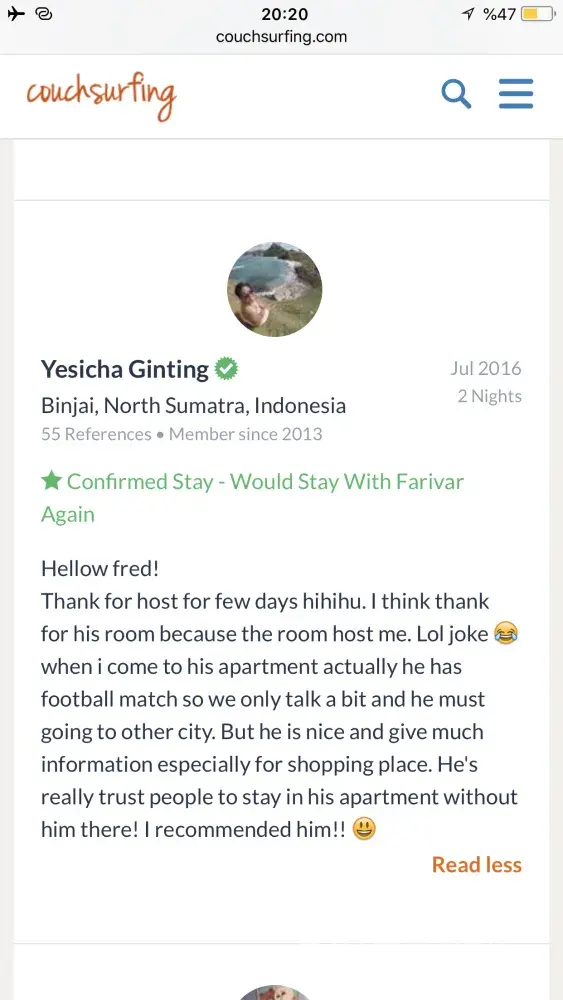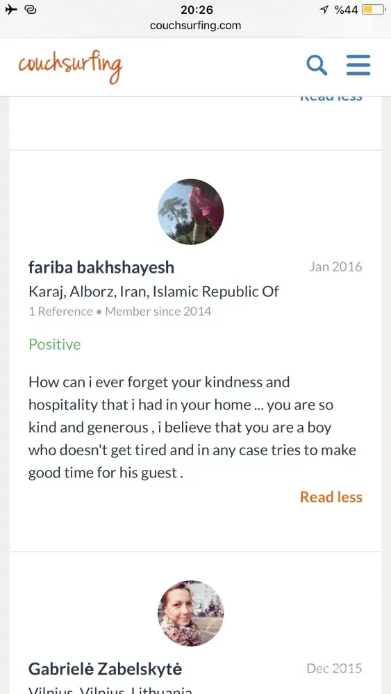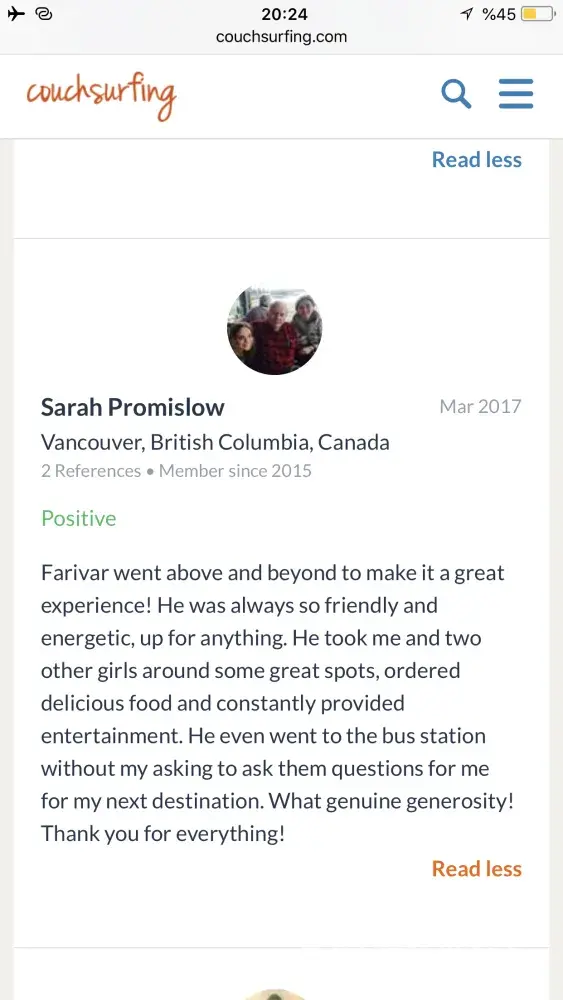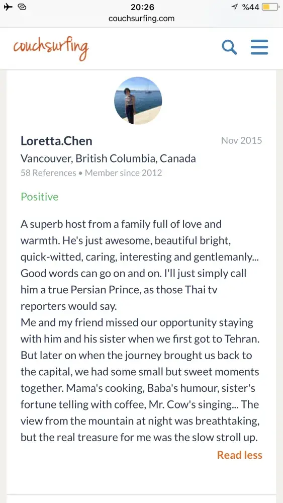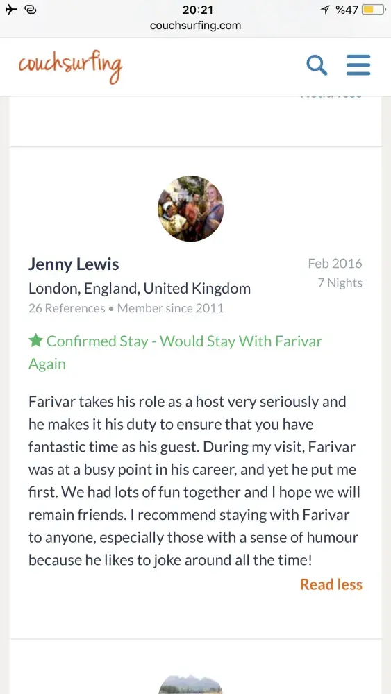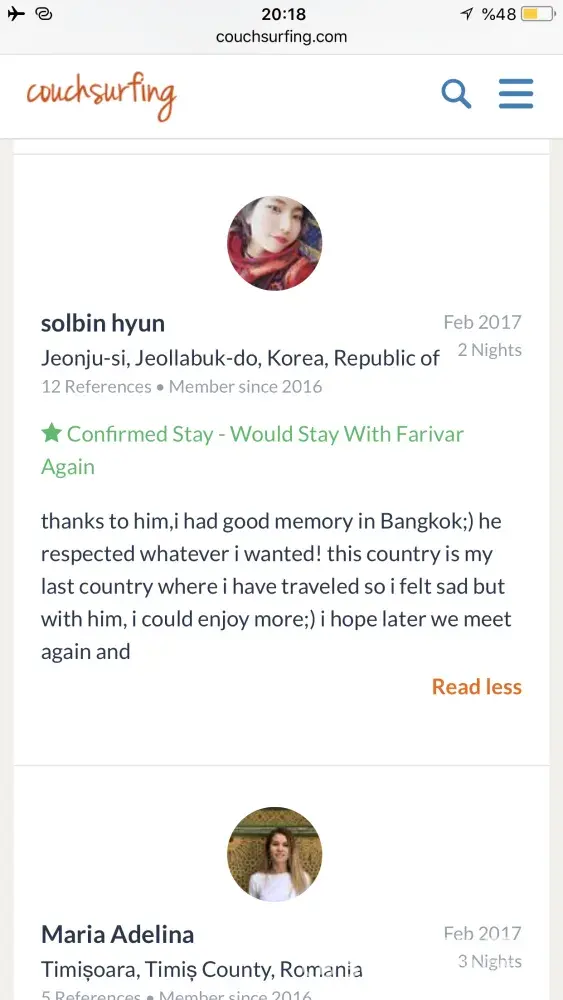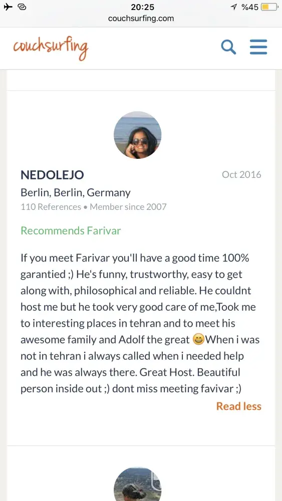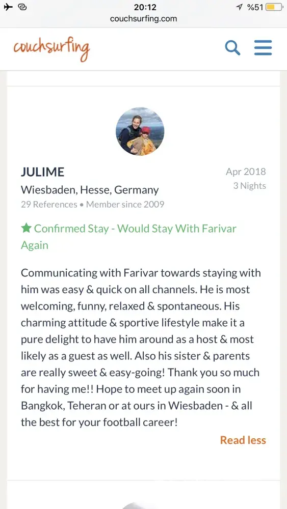 Also I really need an appologise from couchsurfing to me! Because of what couchsurfing did to its trustful and good member