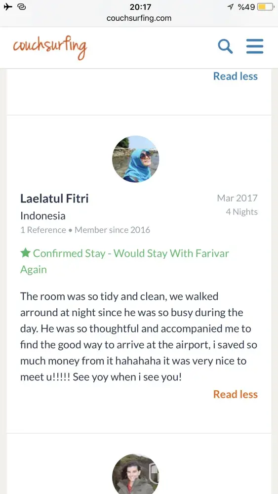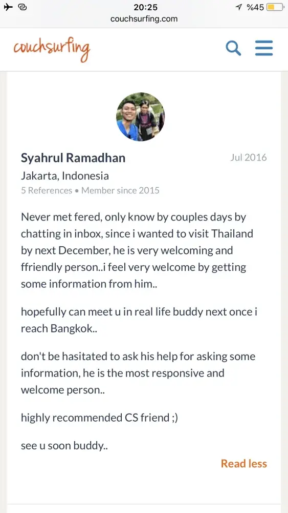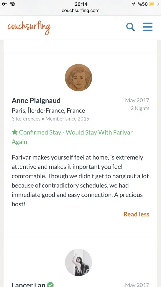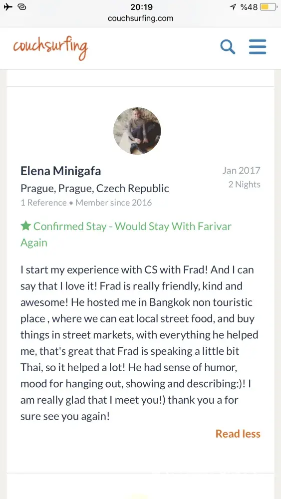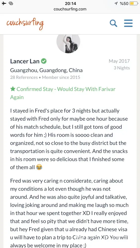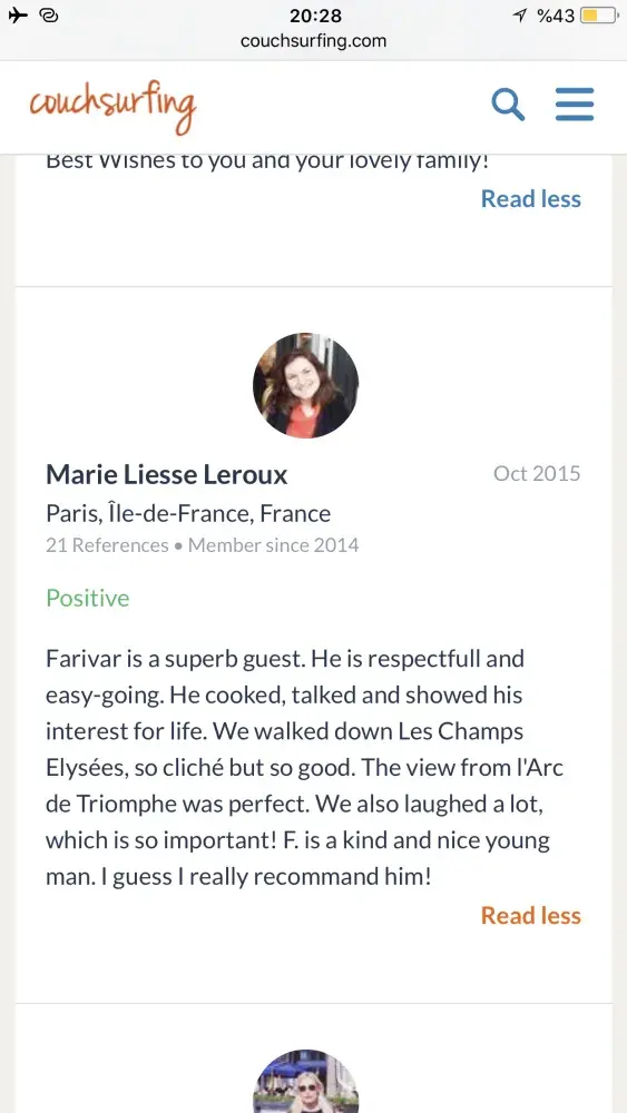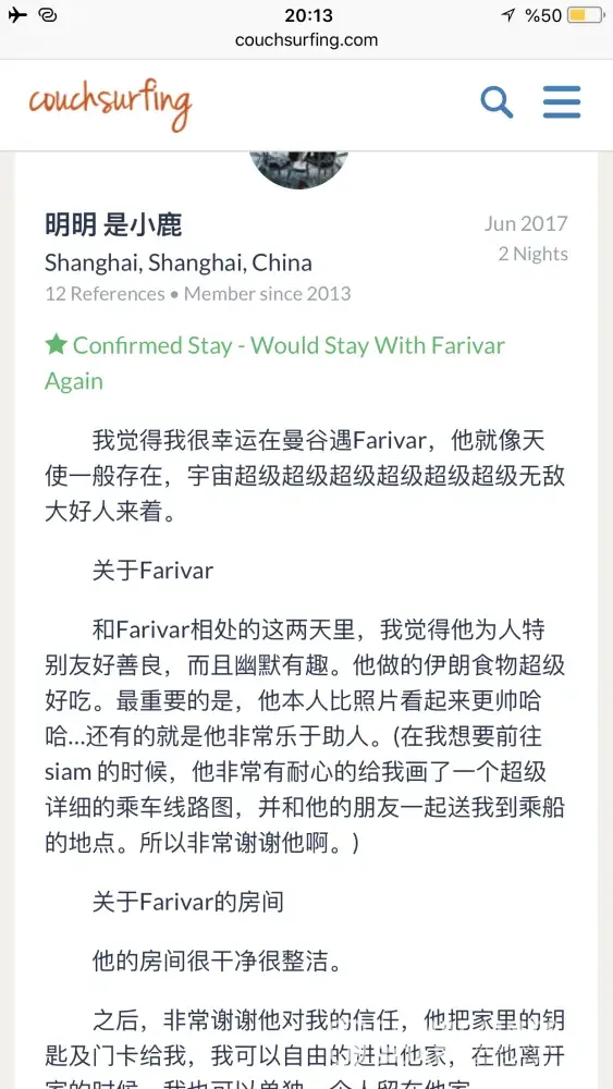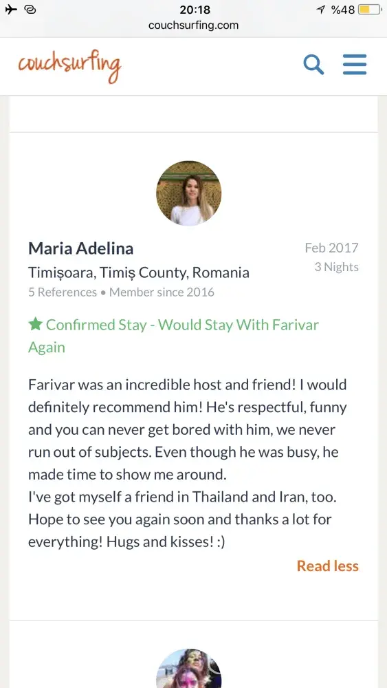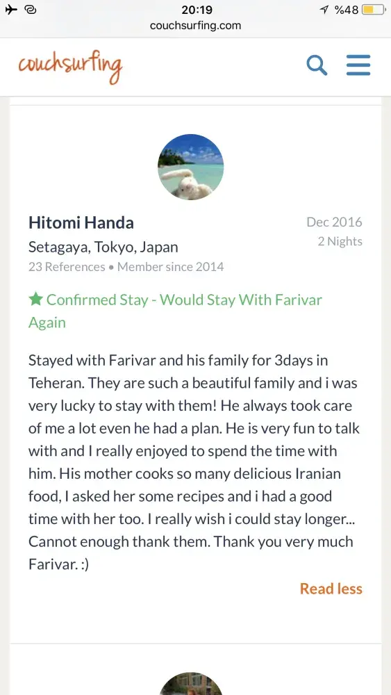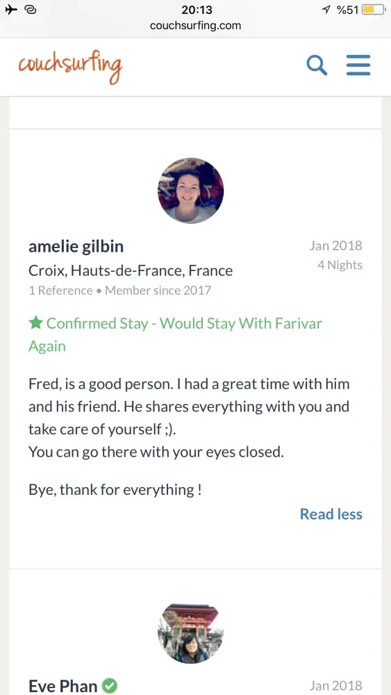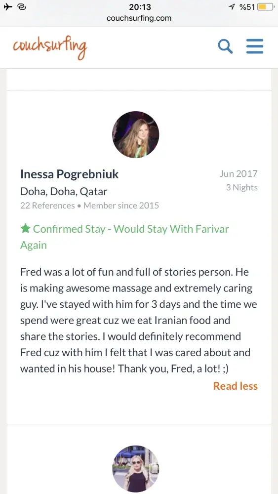 Also I really need an appologise from couchsurfing to me! Because of what couchsurfing did to its trustful and good member