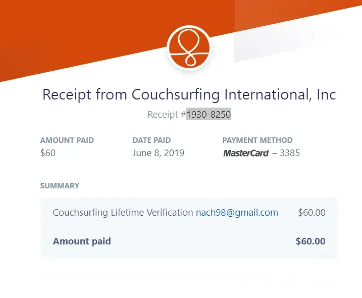 Unfortunately, I too was a sucker and gave this company my info for "verification purposes." They charged my account 60 dollars without my permission. There was NO mention of being charged, NONE. There customer service is non existant. I would like to get a refund. I will be following through with Better Business Bureau. To make it worse there isn't even a record on my profile account that I paid, only a charge by them that showed up in my statement. I am furious. People who choose Couchsurfing don't have the means to get an airbnb that's why they are couchsurfing. They are essentially robbing from people who have low income, it's disgusting.