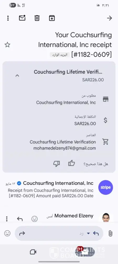 I never use couchsurfing with benefits but you took from my bank account 54 euro.I send messages but o don't have answers. Can you refund money.Please about reply. My page : https://www.couchsurfing.com/people/ada-danicka