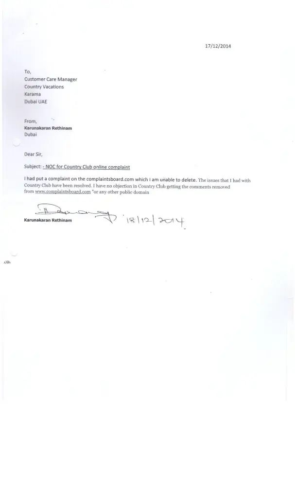 complain against Country vacations regarding our membership with them.