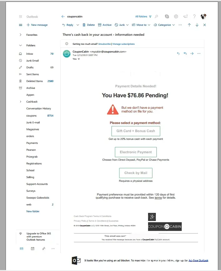 Also, at no point had anyone from CouponCabin told me that they were concerned about fraud. I don't know how much clearer it can be that this company steals money from its members and has not qualms about lying to the authorities, even when there is evidence contradicting them.
