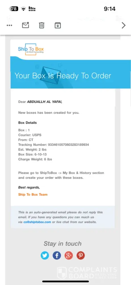 Read full complaintShipToBox - My shipment was stolen on the grounds that it was banned, knowing that it was not in the United States