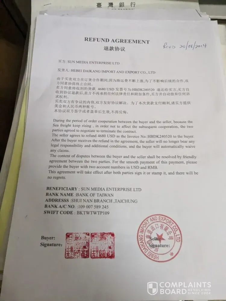 Read full complaint and 1 commentHebei Daikang Import and Export Co Ltd - gpps chemical