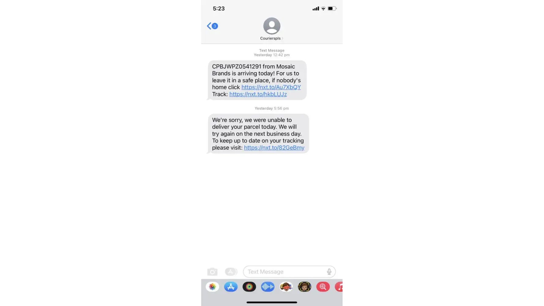 6/12/2022 5.56pm - SMS - I'm sorry we aren't going to be able to deliver your parcel today. It will be delivered tomorrow.