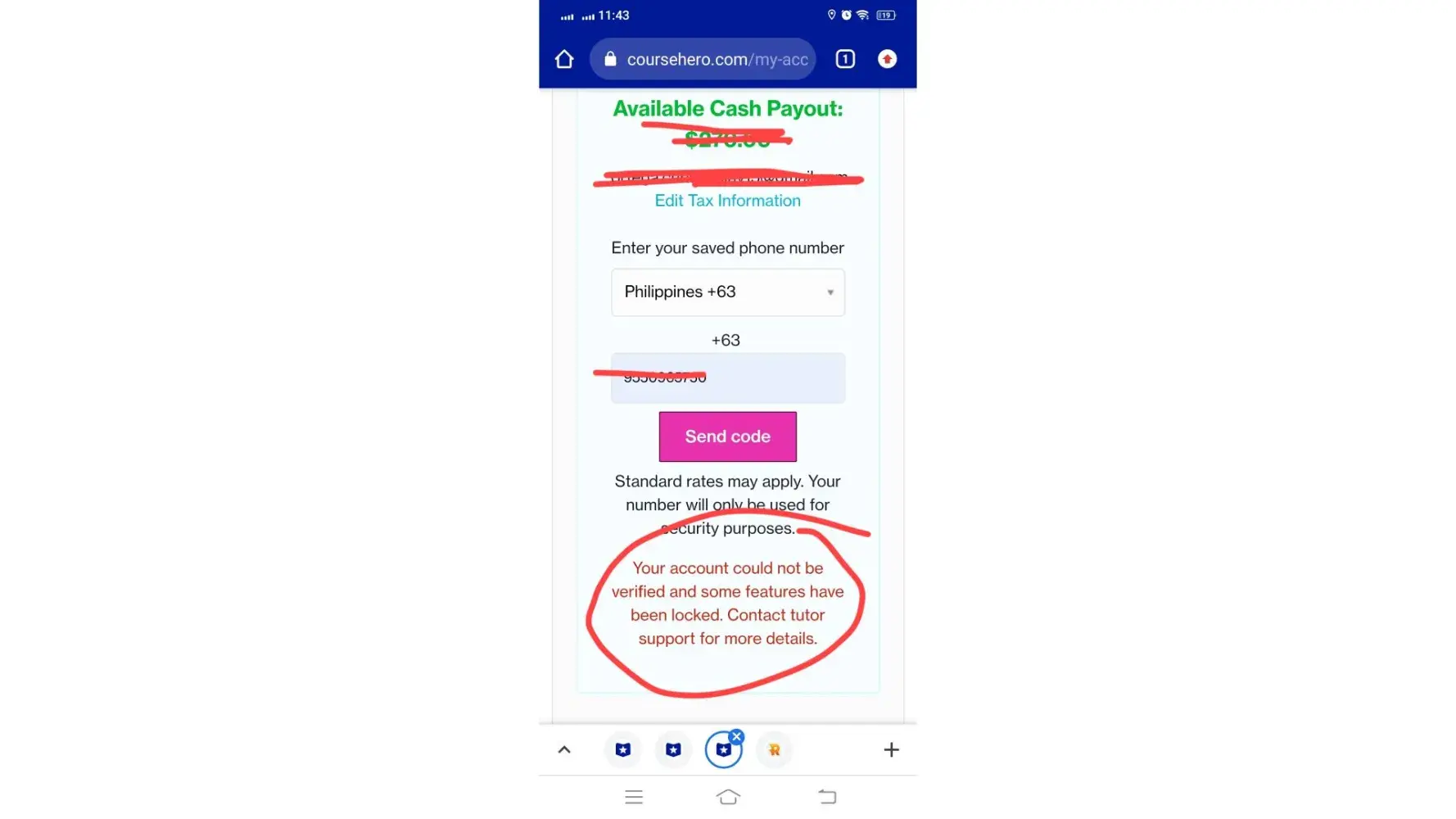 Course Hero - Can't withdraw available earnings - locked account due to verification codes