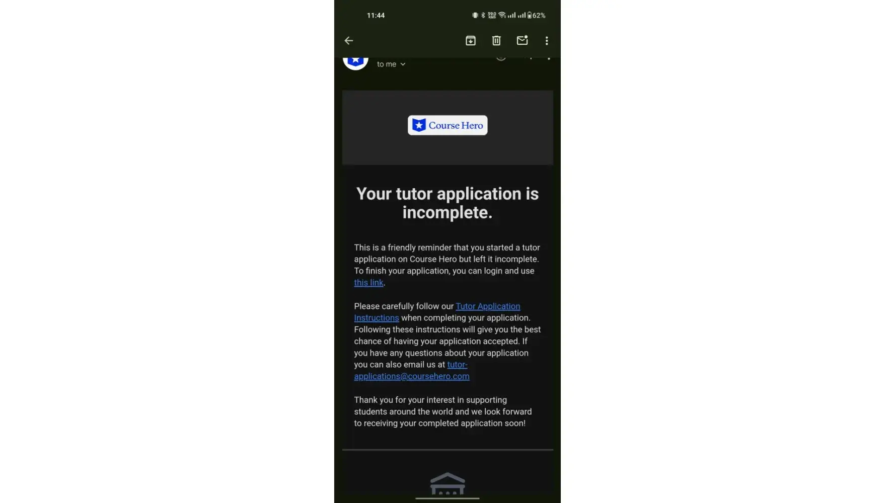 Till now after 20,30 days they still emailed to complete my application. Course hero haveWorst support services.