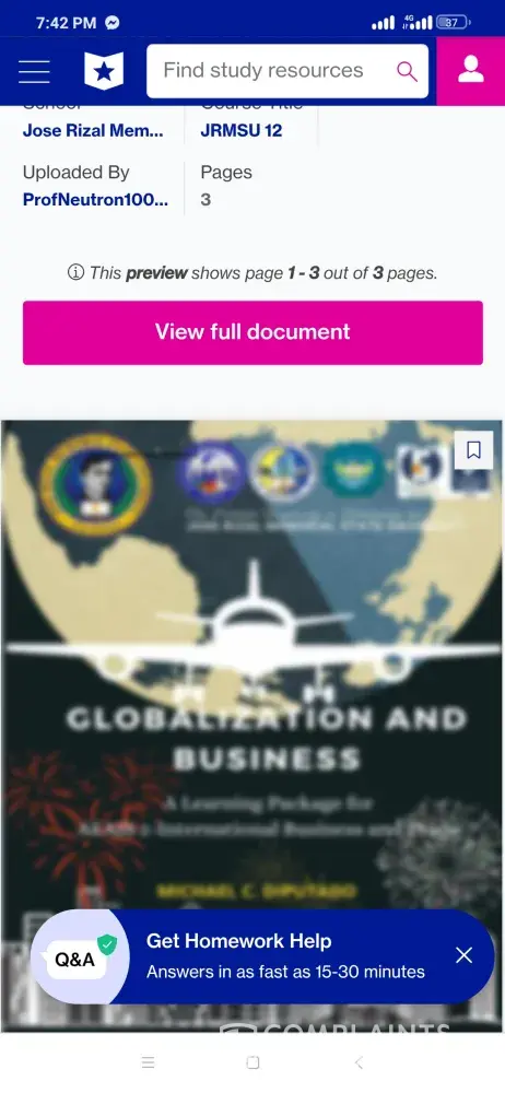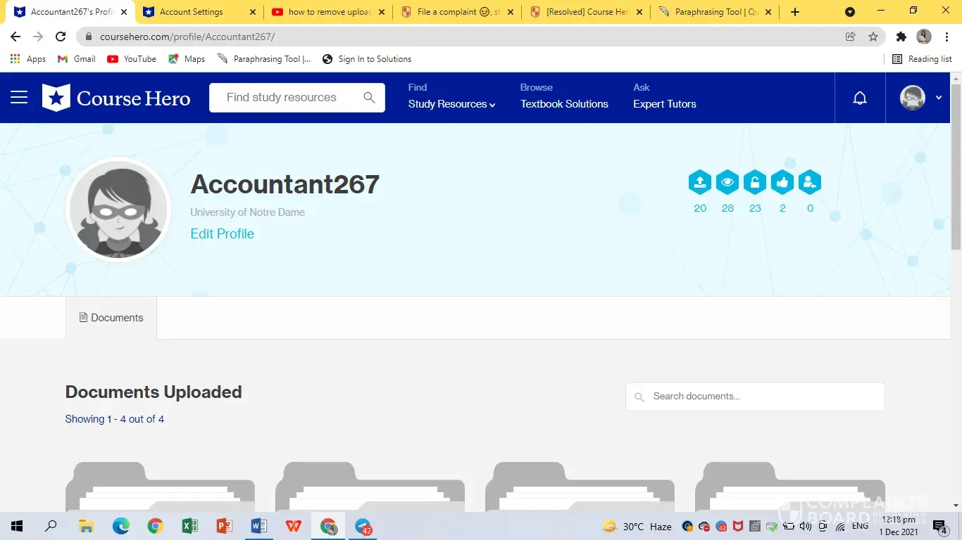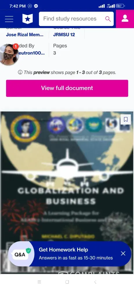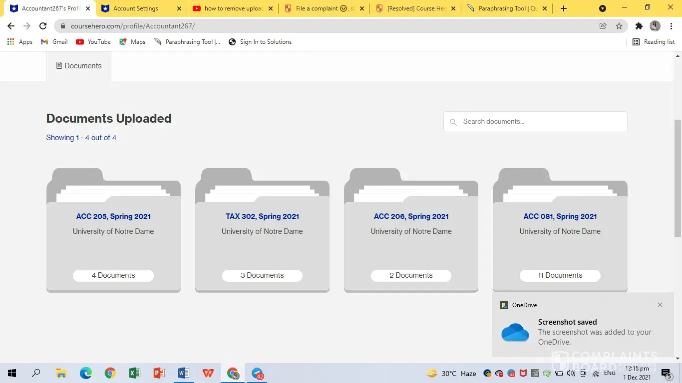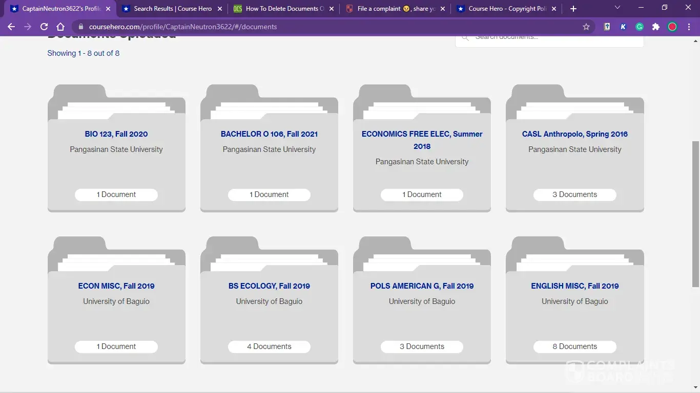 Course Hero I am complaining about the documents that i uploaded my documents in course hero