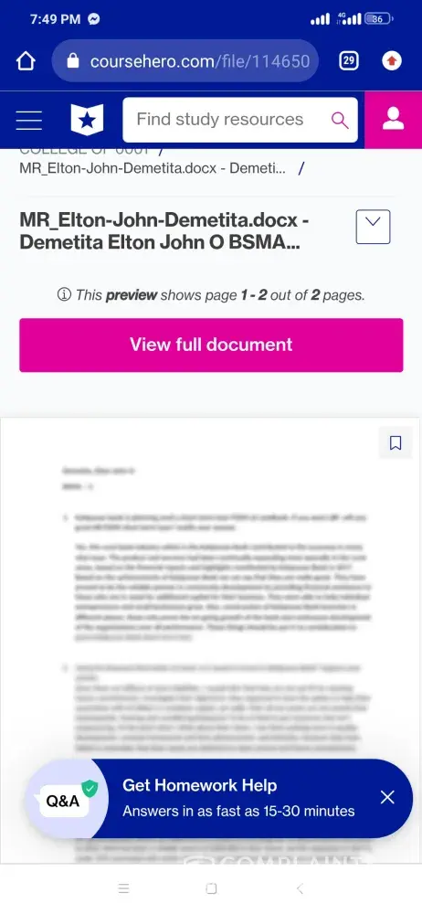 On 29/11/2021, I have uploaded some documents on my course hero account. However, after a while, I realized that I uploaded the wrong documents, my assignment contains my personal information that I don' want to reveal . Moreover, they also have negative content that affects viewers. Then I emailed to your company and request your help to remove my documents. However, your company didn't give me a help to remove them. And I have email you many times but there's no reply . Removing these documents is vital for me . Therefore, I hope that I can receive your help to remove them as soon as possible. I will attached link of these document below