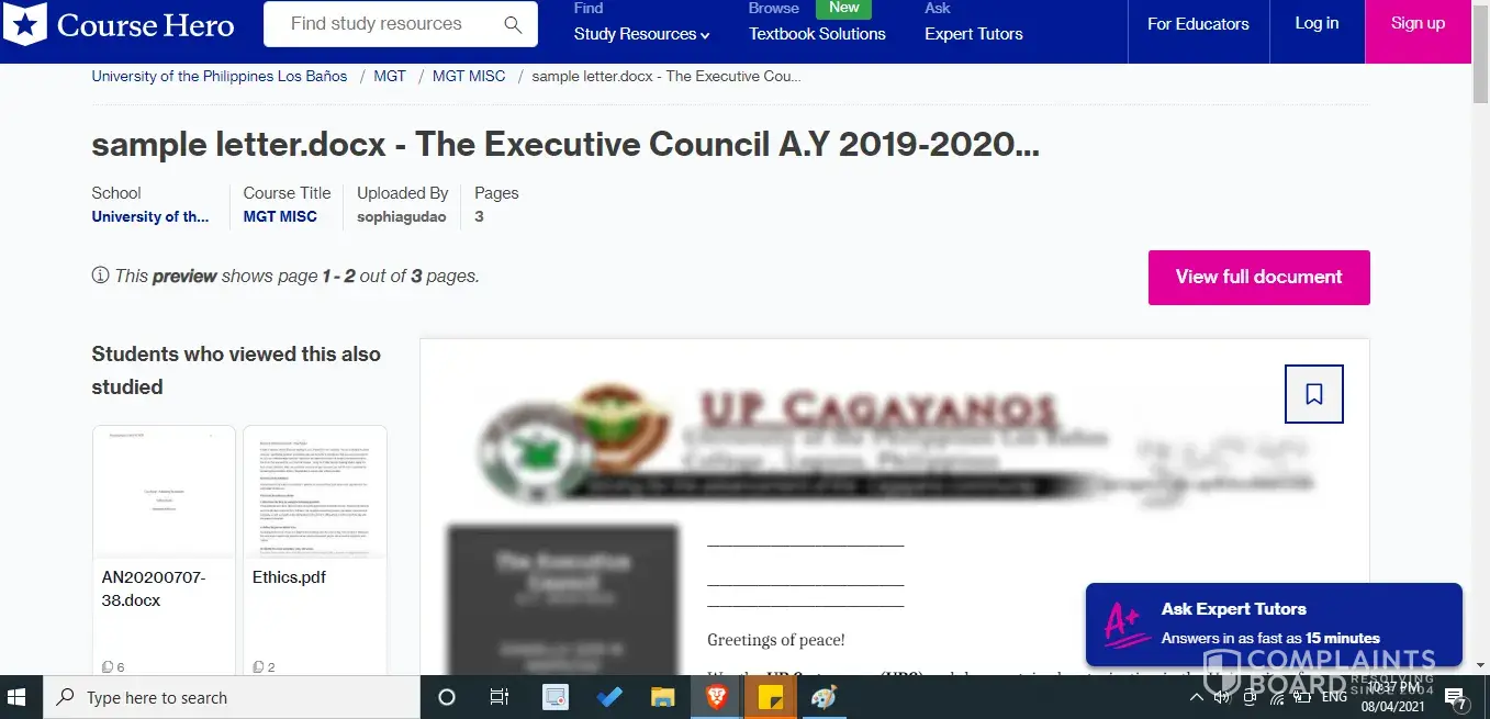 A long time ago I texted for a document / article belonging to a government agency or an official person. I also wrote why it is an official document. The emails I send messages to are support@coursehero.com and dmca@coursehero.com. But still there is no answer or return. I think it is important to remove such documents. But I don't understand why it hasn't been removed yet. I would be very happy if you could help.