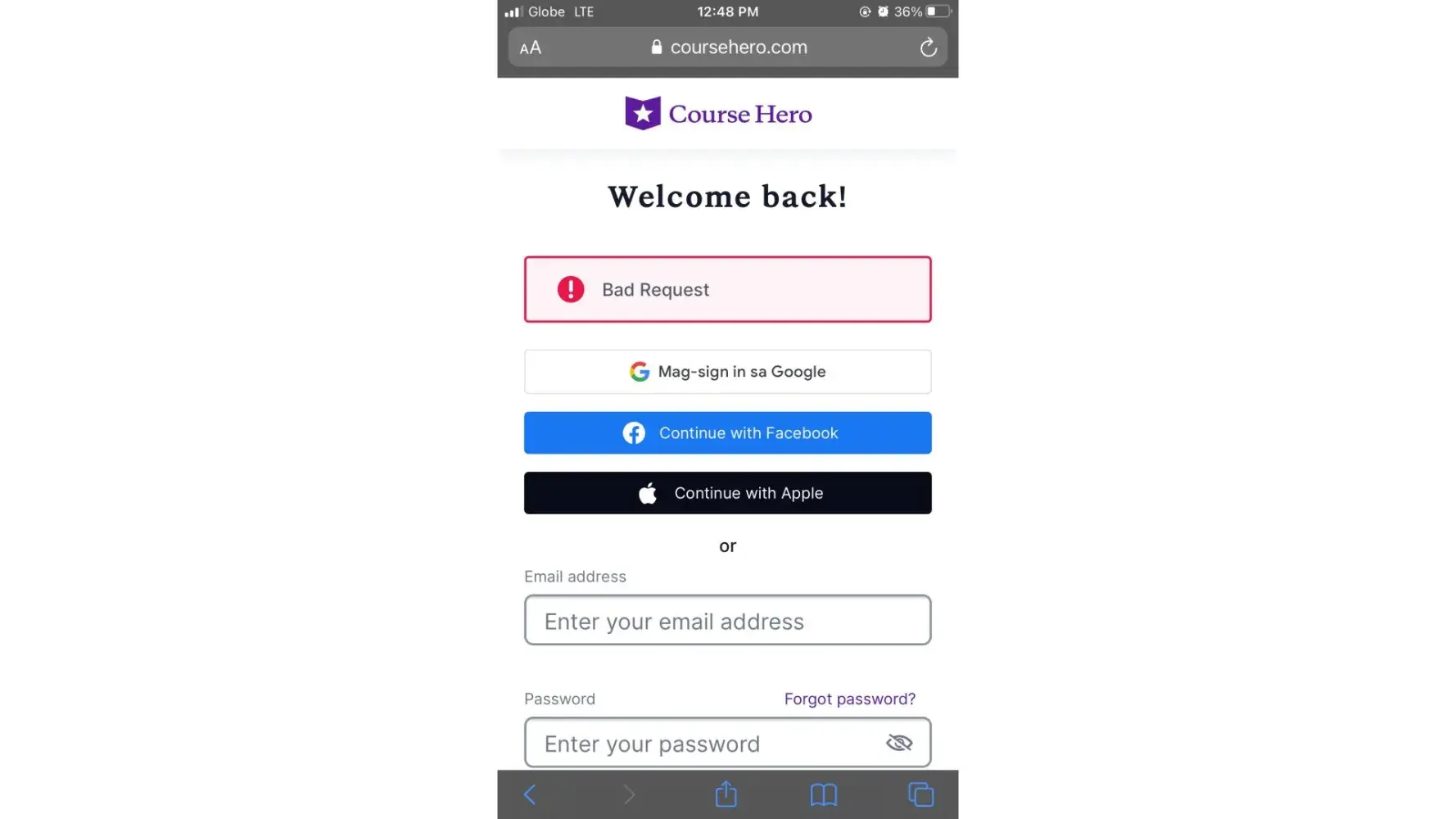 So when I was trying to log in to my account (agentfang10488) from the login page a message says bad request, and when I find something that I upload (with another account) I go to the uploader and click in there. Then it sends me to the page not found and I can't do anything then I try to look for more things that I upload and they still in there https://www.coursehero.com/profile/AgentFang10488/