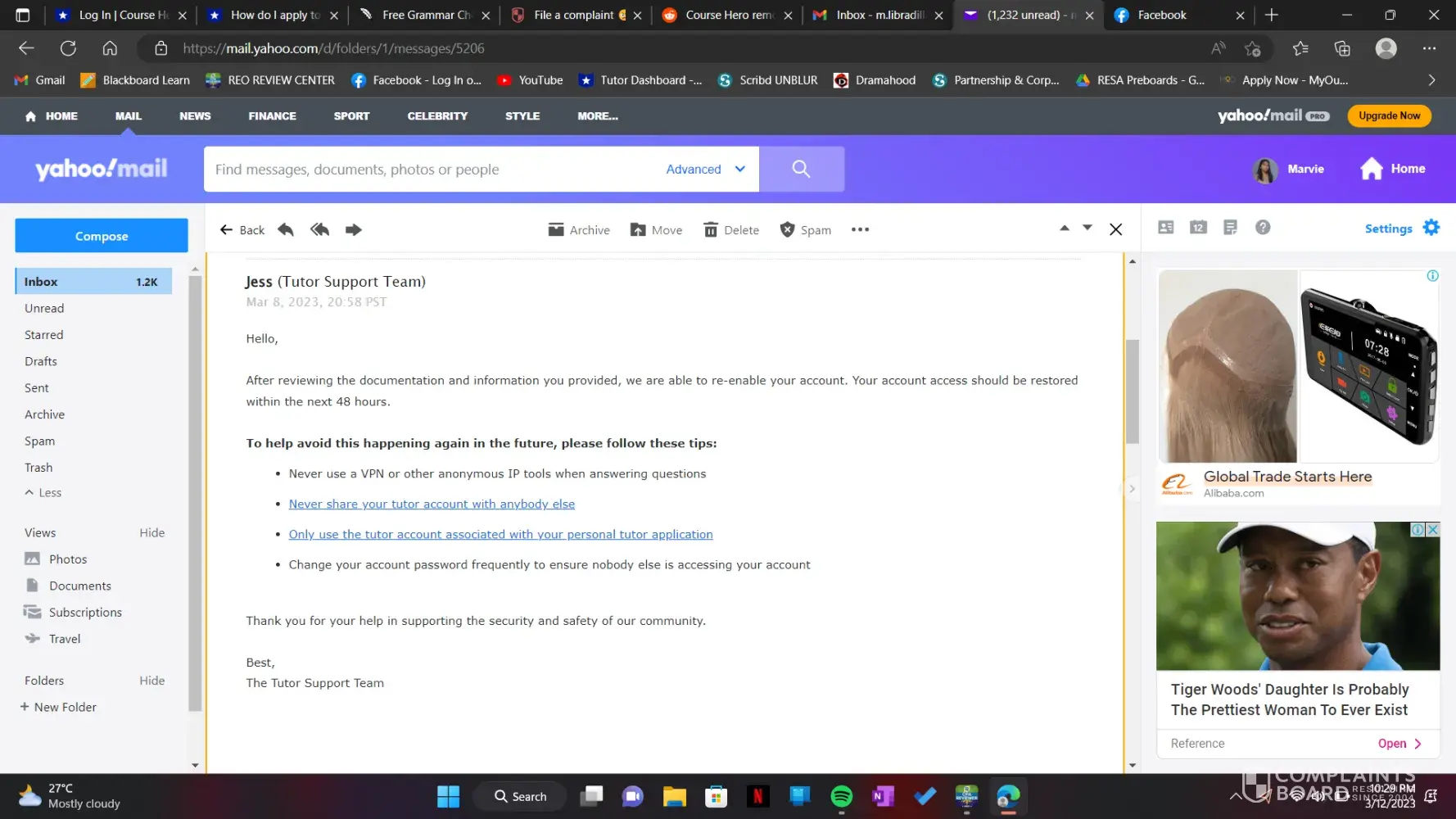 I got an email from CourseHero on March 17, 2023, at 6:35 pm Central Time saying that they saw an unusual activity on my account and decided to disable it I have 48 hours to send in 3 items for verification so they can reactivate it. I've sent in those 3 items to both the replied email which is [protected]@email.coursehero.com and [protected]@coursehero.com.