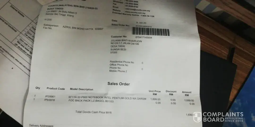 We have purchased many items from Courts Malaysia on 29 Feb 2020.