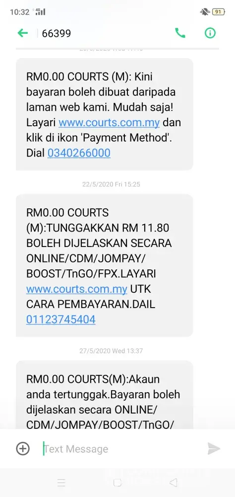 During this mco can u please be considered? Never missed bayar pun.. Now smua mana da kerja.. Majikan dah la haram pun tak byr gaji. Cam ne nak byr ni.. Dah la call mcm along.. Kasar2 call org.. Isit like that your customer service.. Thats why I never answer your call.. Very rude... Dh laaa kena kan tunggakan tgh bulan.. Pelik! First and the last I will buy things from courts.. Luckily tu pun hp.. Do something with it.. Smua org bermasalah.. Bank pun kenakan tangguhan.. Please do something untuk beberapa bulan ni.. Bukan takda duit.. But pikir dulu nak makan.. Berkeperimanusiaan la ckit.. Dan jangan suka2 call org kedua.. Ingat sikit masalah org
