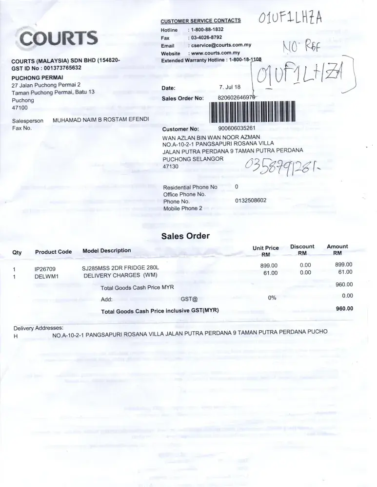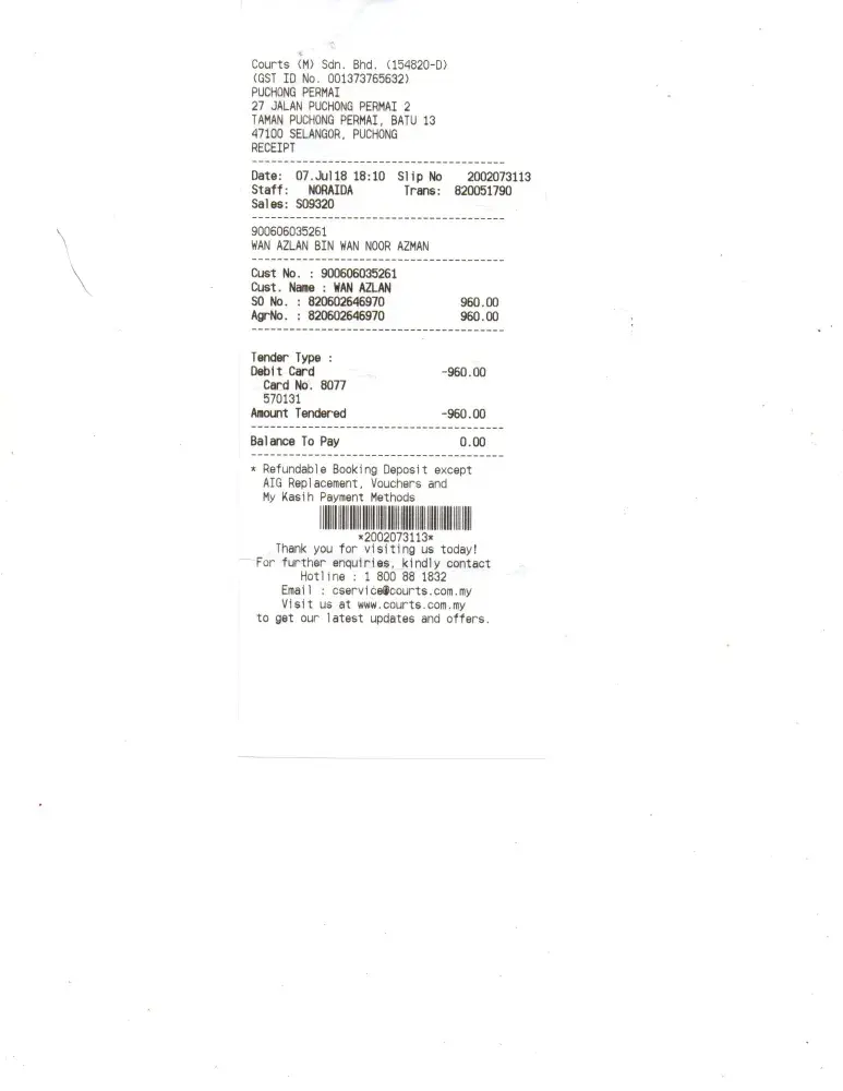 I have purchased goods from courts a few year ago, I have also walked in to the subang jaya branch, spoke to the cashier, asked for a final amount & made the full payment as per advised.
