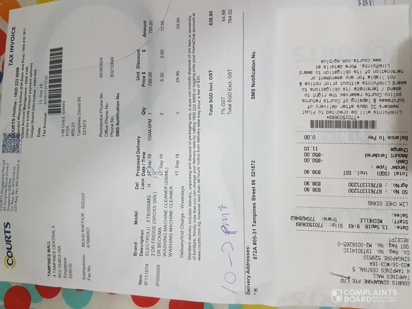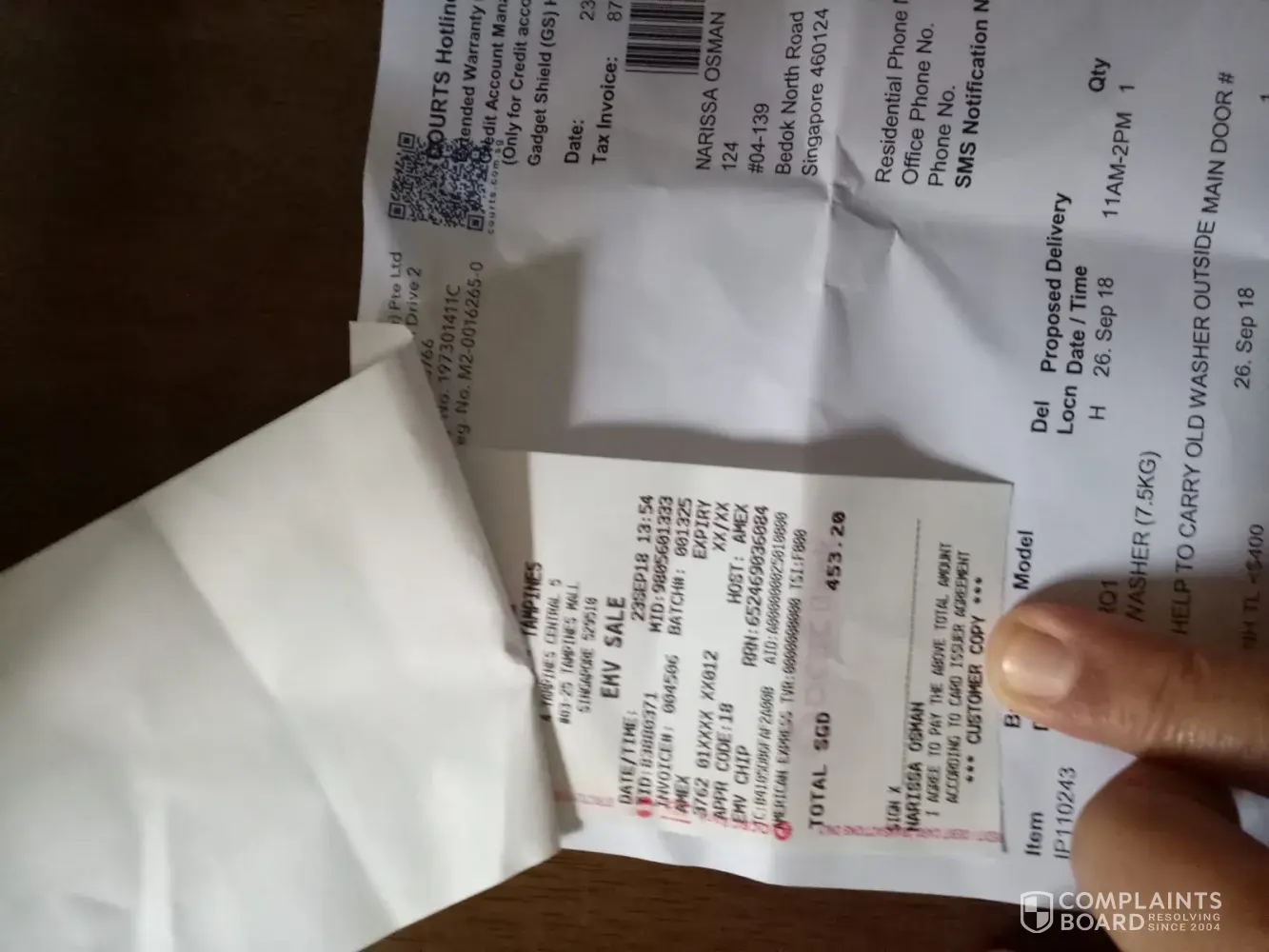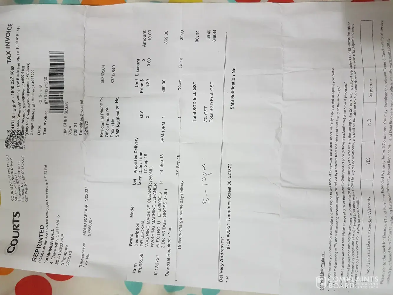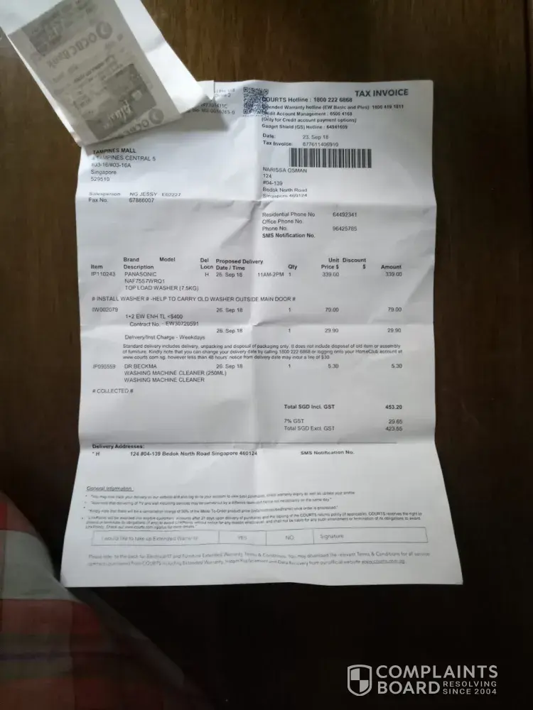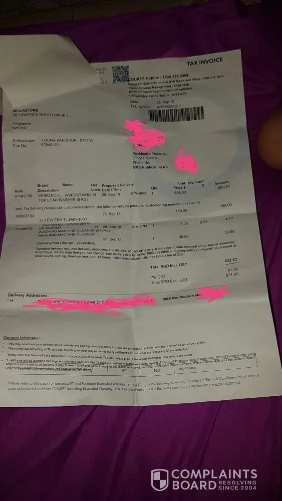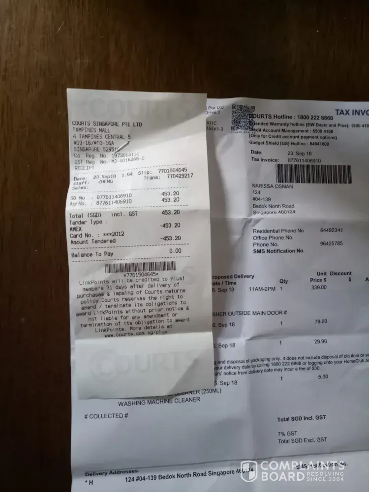 I purchased a washing machine on 23rd Sept 2018 at Courts Tampines Mall.