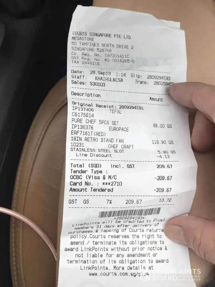 I paid $999 with my uob debit card on 15th november 2018 for the purchase of europace casement air con. It was scheduled to be installment on the 26th november 2018. And on 21st november 2018, courts contacted me that there was no stock available for the air con. And courts would offer me a refund on my $999. However, the refund would again take at least another 1 week to 1 month depending on the banks and merchants involved. This is too unreasonable on courts side. Because courts had already collected the payment on the 19th november 2018, which my bank informed me when I went to uob bank to enquire about the refund. Courts have caused me to take alot of leave and wasted alot of my time. The least you could have done was to just refund me back my $999 in cash and not further delayed me for any of your so called procedure. Bacause you have already collected the money and failed to delivered your goods. And keep giving me more trouble as I needed the $999 to purchase from other shop for the casement air con. Just to buy 1 simple air con, and its going to take me more than 1 month and still not able to do it. All because of courts irresponsible way of conducting business. Because I was being forced into accepting courts way of dealing their business. Really need to post it on social media to let the whole world knows never to purchase from courts as you are a irresponsible company. The air con was purchased at jem courts outlet.
