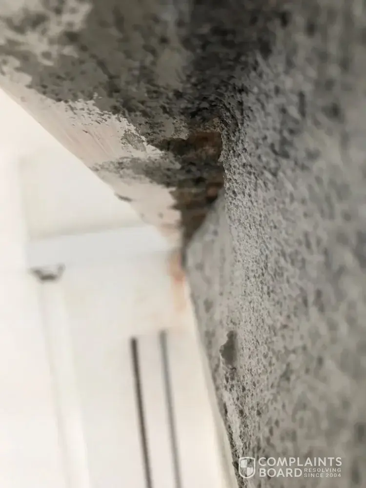 We noticed that the casings are not installed professionally. There are holes in between the casings. We also noticed that there are black patches appearing on the silicon.