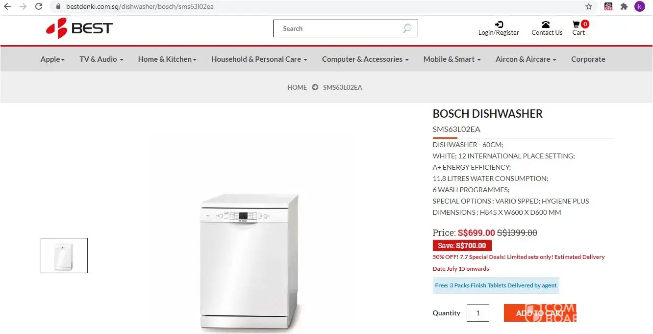 Price match - dishwasher purchased on 27th jun at sgd 899 vs competitor price of sgd 699
