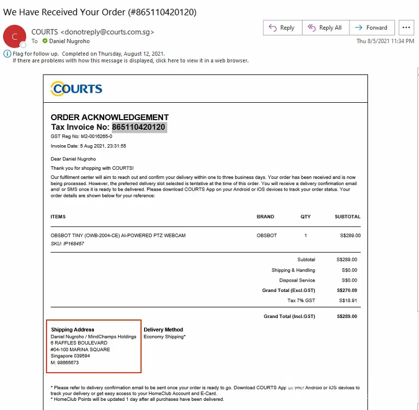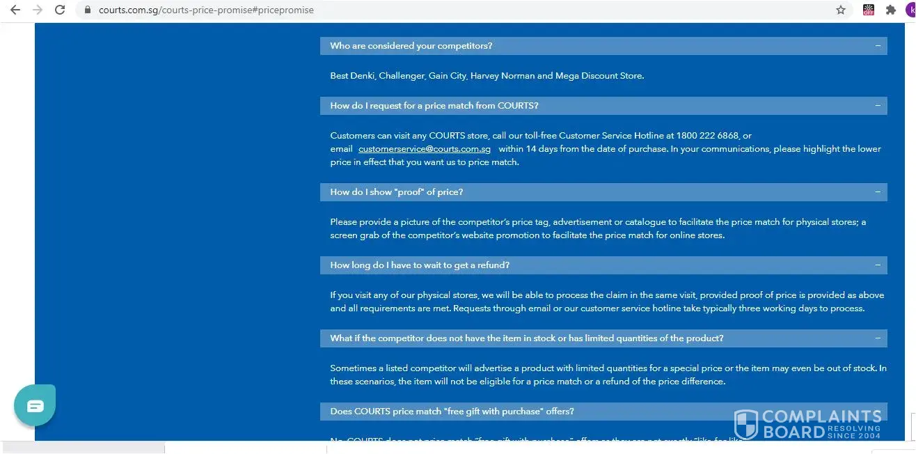 I sent an email to [protected]@courts.com.sg, and I am waiting for resolution.