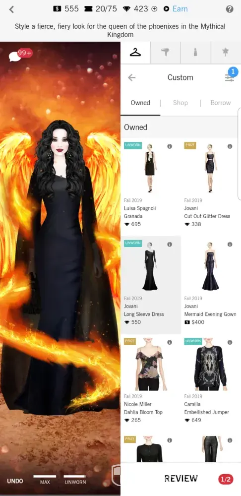 Hi, I am playing Covet fashion game on my phone for almost a year. Me and my friends have experience constant difficulties to select specific brand/ color/ type and ect. of garments, because on many different phone models options button is almost inaccessible. This button is way too much on the right side. My recommendation would be to align this button by the left edge of button 'borrow'. Thanks, and hope you will take it seriously, as it is superbly annoying issue.