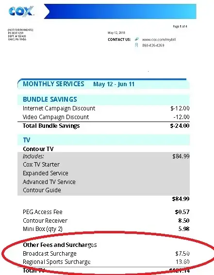 Cox Communications regional sports and broadcast surcharges