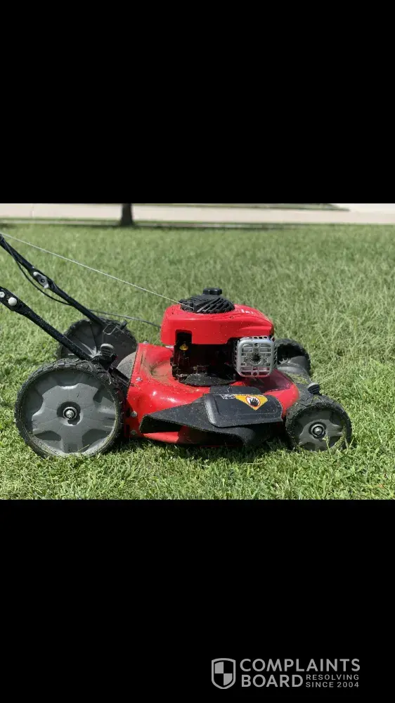Desired outcome: I want the mower picked up, the failure determined and fixed and then returned at their expense.
