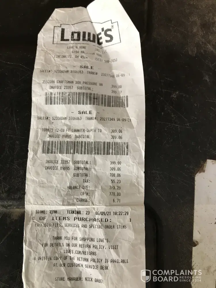 I bought a wheel barrel from lowes in Jacksonville N. C on [protected] and the bed of the barrel split. I sent a picture of the split on [protected] and was told someone would contact me. I received a email on [protected] someone asking me how was the service for my claim. When I told them no o e had contacted me NOTHING. What do I need to do. I've tried calling the customer service number for two days and it is constantly busy. Why say someone will contact you and then NOTHING.