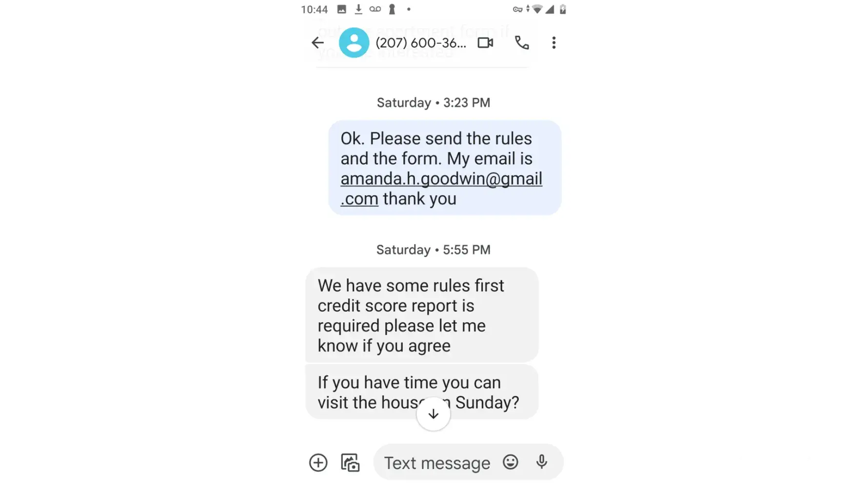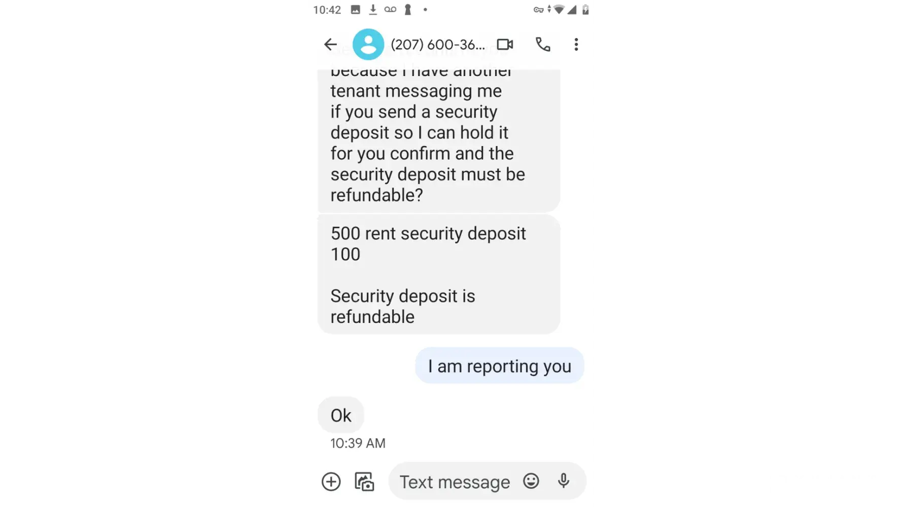 After sending the credit report, this person sent another link and said I had to fill out another credit report. At that point, I refused. Then, the peron asked for a deposit, which I also refused. I started to ask for the information of the party that was renting, and I got no answers. Finally, I informaed the person that I would be reporting them. And I stopped replying to their messages.