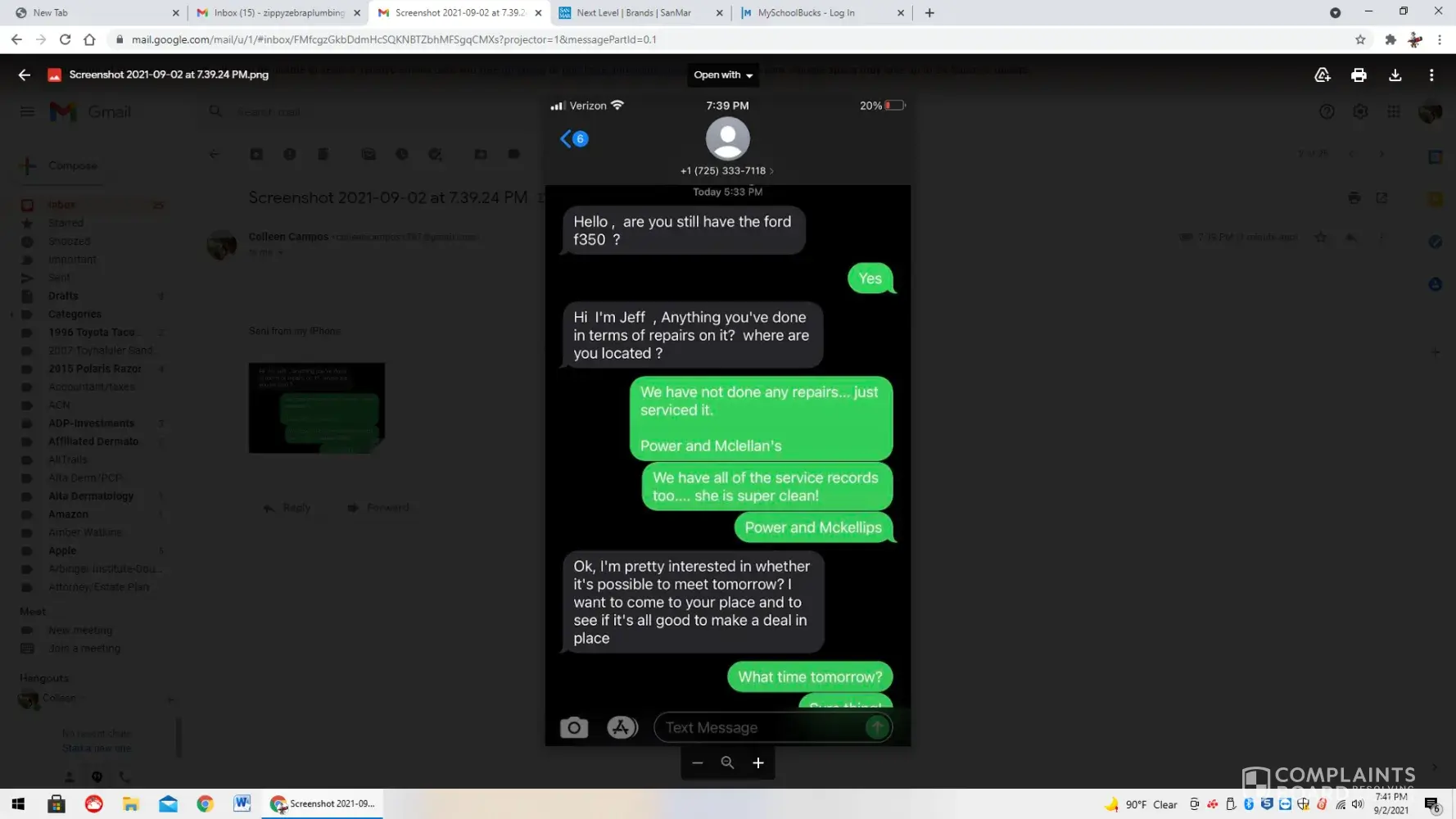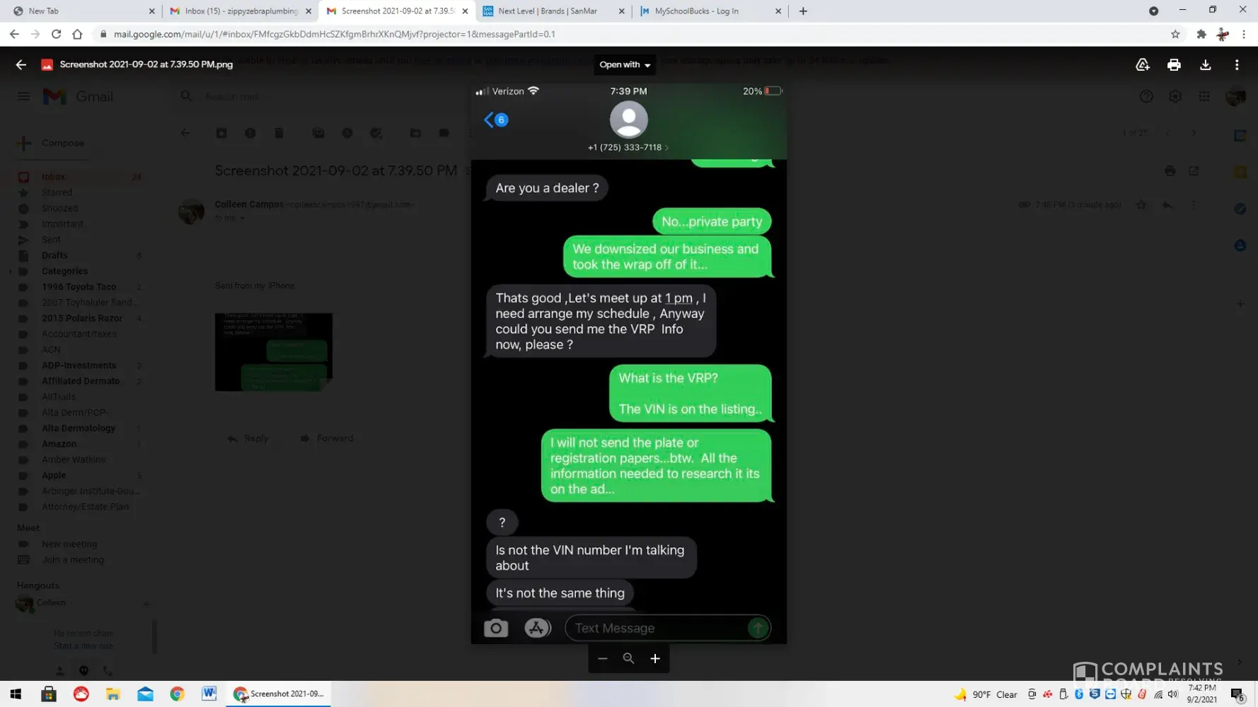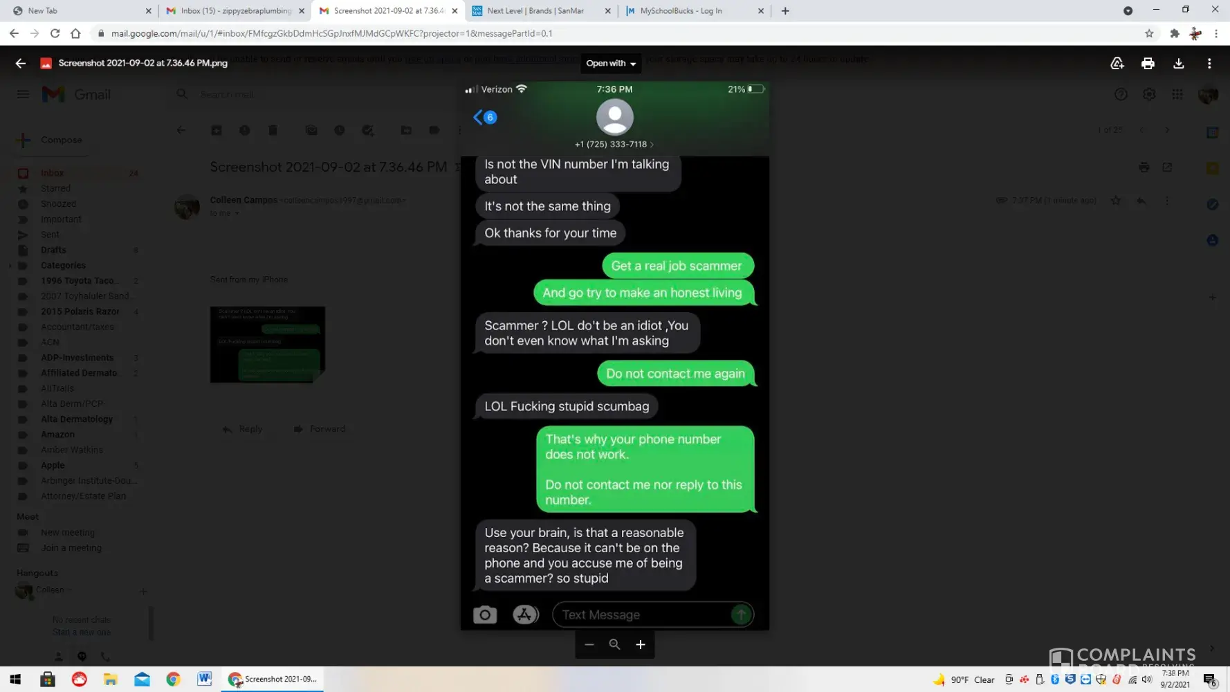 I paid to list a vehicle for sale in Arizona and have incurred yet another scammer. However, this one was rude and used abusive language. I listed the vehicle on 9/1/2021 and the individual started contacting me on 9/2/2021 at 5:33 PM.