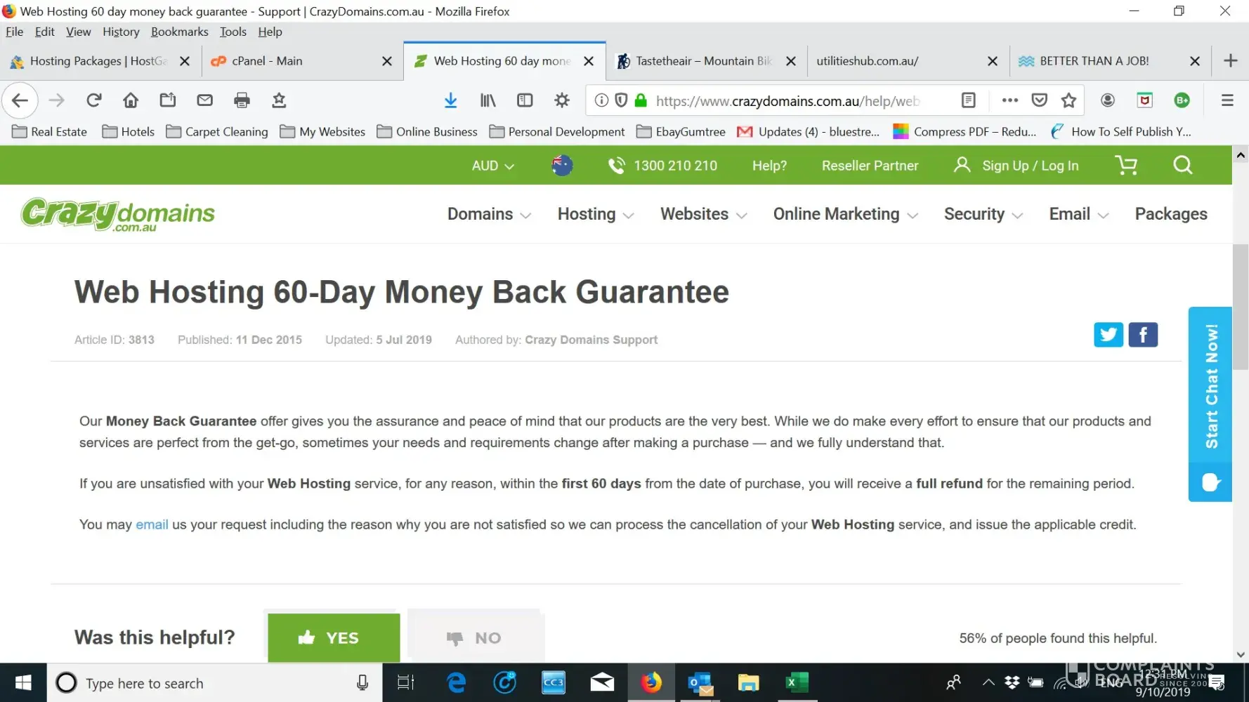 I Decided to get Crazydomains.com.au to host my 10 websites. They offered a competitive rate plan of Transfer Hosting, which included transferring my websites and emails with databases across from Hostgator.com to Crazydomains.com.au. They offered a 60 money back guarantee (see attached website screenshot). The transfer was paid for by way of a 36 month subscription for approx $399.00 and an additional $217.00 fee for advanced support. Thats over $600 I paid to have them provide their service on the 26 Aug 2019. It has been 2 weeks and still I have problems with accessing websites and receiving emails. There has been a continuous raft of glitches and problems that have caused the sites to be off line for periods, sending warning messages to bots, continuous messages on all sites that they are not secure, and produce warning messages scaring off readers. Also since moving across to Crazydomains.com.au, I have been inundated with spam emails of the worst kind. Threats of extortion and blackmail included. It has been disasterous, time consuming, stressful and unacceptable - less than what was promised. As of 9 September 2019, I decided to advise them via email I wanted to cancel the service. I phoned their reception on 1300 210210 who advised my refund amount to be correctly $616.00 and I should contact Silverio who was my account manager. I advised him over the phone again that I was cancelling, then afterwareds received emails from other personnel saying their money back guarantee does not apply to services that are up and running. This contradicts their advertised guarantee (see attached screenshot) which is what I signed up with, there are no links or any advice to the contrary provided, only when I attempted to cancel and claim the refund. I have since replied with a letter of demand and await their response. I dont feel it will be agreeable to providing a refund and this is why Im not wasting any time to provide this complaint here.