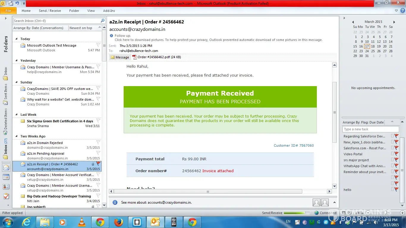 Crazy Domains Customer ID: 11895169 - claim E10799