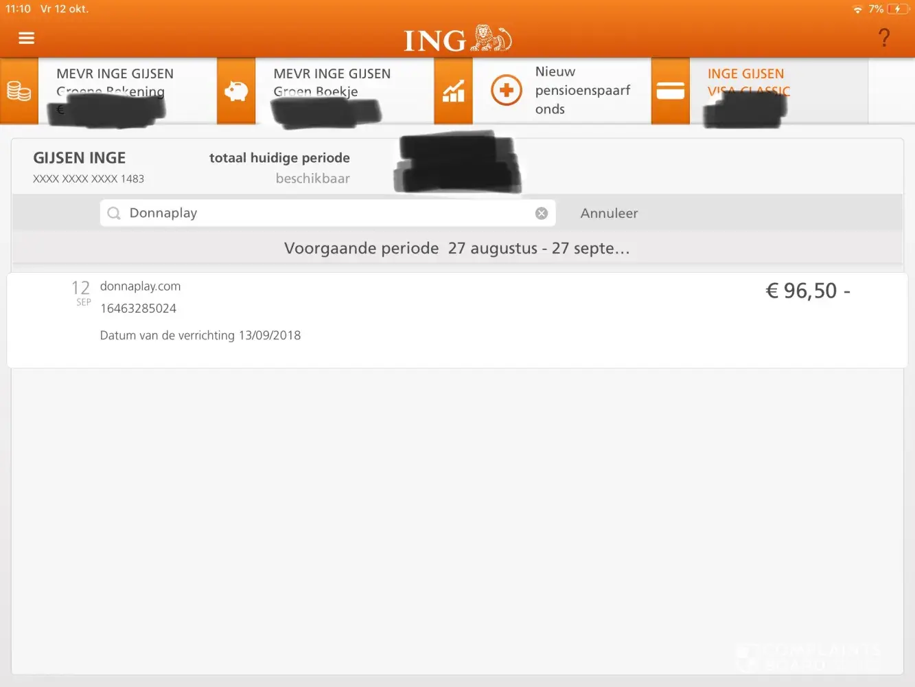 Ik, Inge Gijsen, dien een klacht in tegen DonnaPlay en wens abonnement onmiddellijk te beëindigen. - onrechtmatige bestellingen via mijn creditcard bij donnaplay en annulering van dit abonnement onmiddellijk!