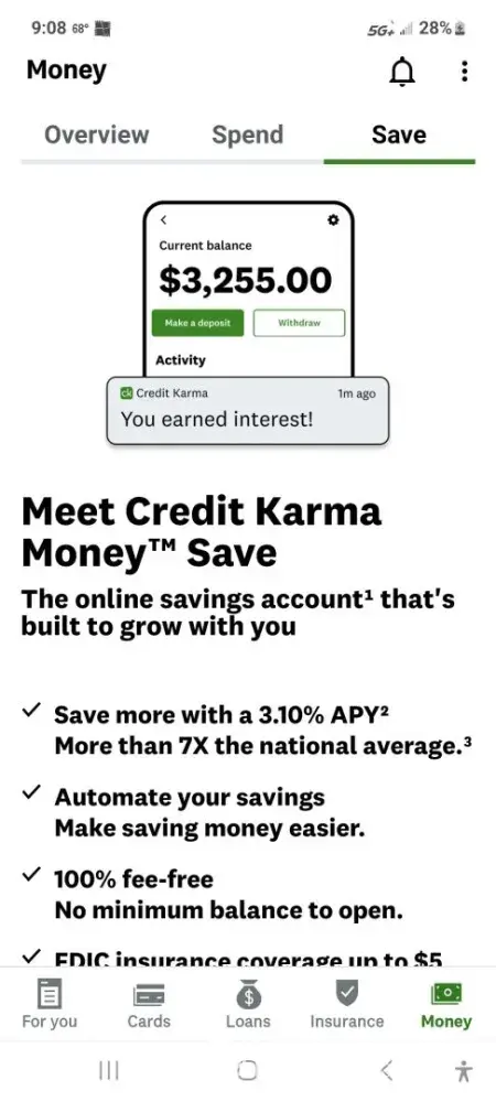 Credit Karma sent me two emails stating that my spend and savings accounts were closed. I contact their customer service multiple times. Through their useless chat and their barely useful phone support. They have stated that I should receive an email asking for documentation to verify my identity. In which I never received such an email asking for any sort of documents. After about 8 days they notify me that my accounts were closed. Of course with no explanation. They will spout about closing accounts for any reason. Which is fine but they could have at least gave me the option to pull my money out before they did that. After about the 4th time I called the customer support representative finally sent me the email I was supposed to get when my accounts were locked. But at that time the accounts were closed already. And since they locked my accounts and would not let me switch my linked account my money is completely gone since they are sending it to an old account that I had closed years ago. Overall it was my fault if I would of known they were not BBB credited I would of never had an account with them in the first place. And I will completely request that my credit karma account as a whole gets deleted once I get my money.