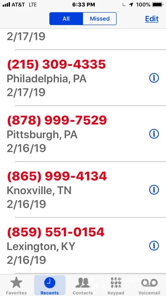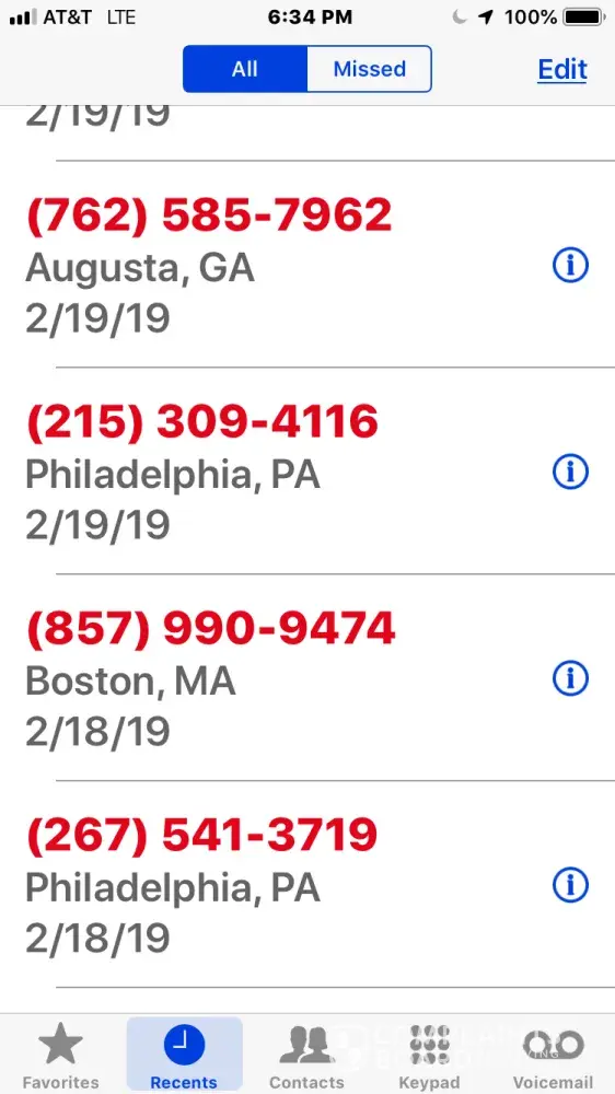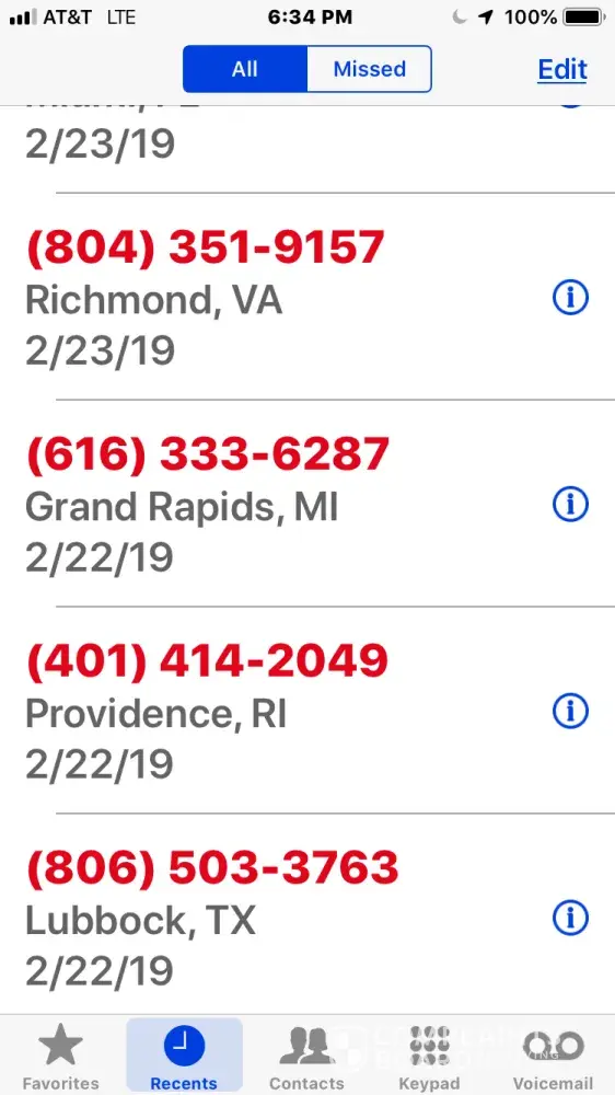 I am late on my credit card payment. The bank started robo calling me around the first part of feburary 2019. These calls were around 9 per day, sometimes in the late night/early morning. I ha had to change my phone number on march 1st 2019. I started savingthe calls on feb.15, I have screenshots of them attachment