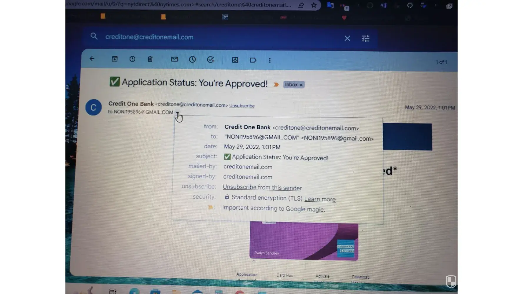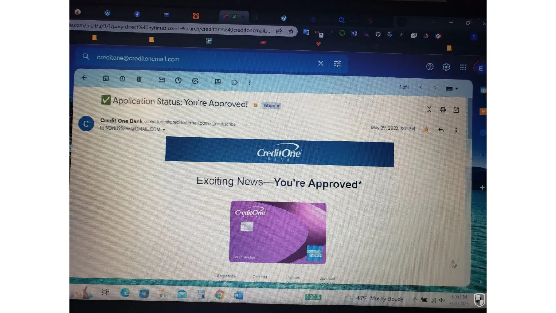 I applied for a American Express card back via Credit one back in 2022. I was approved according to the email they sent me. I waited for the card and then life happened and I did not follow up. I finally did follow up and was told I was declined. When I told the rep that the email said I was approved, he asked me to hold on for a couple of minutes, which turned into 20 minutes then he disconnected the call. I have to email with the approval. I'm attaching photos of the email
