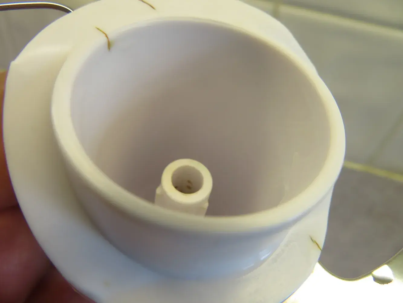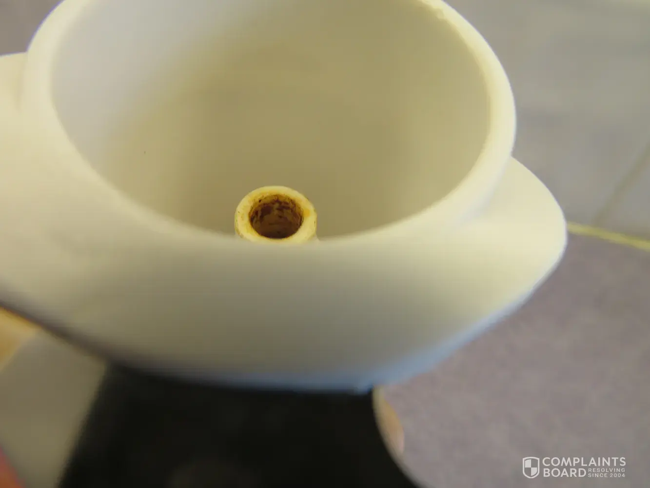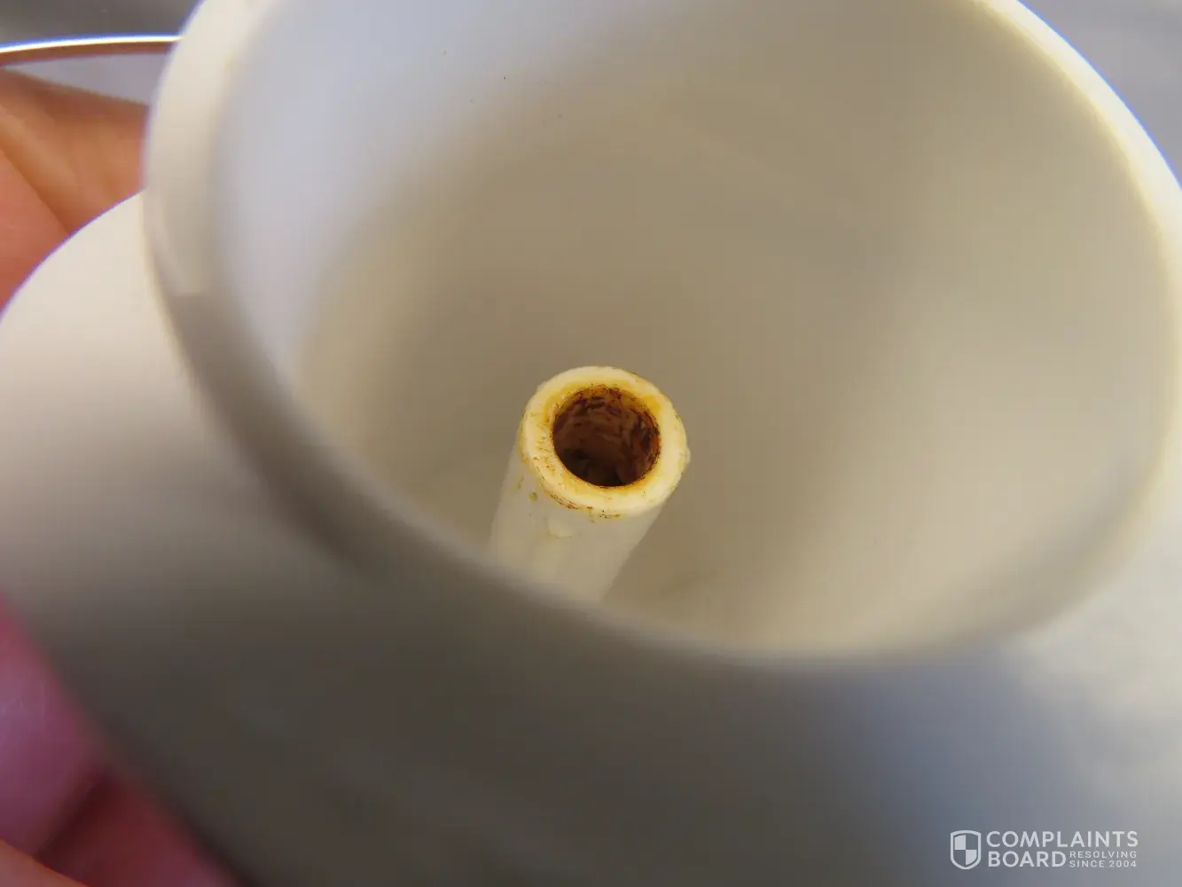 I have 2 machines. Both units have the same issue. The hole must be cleaned using toothpick with cleansing powder.