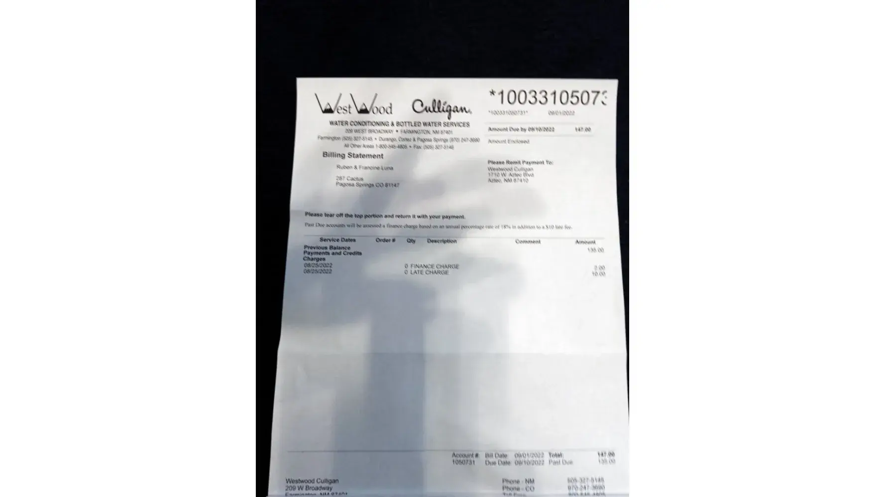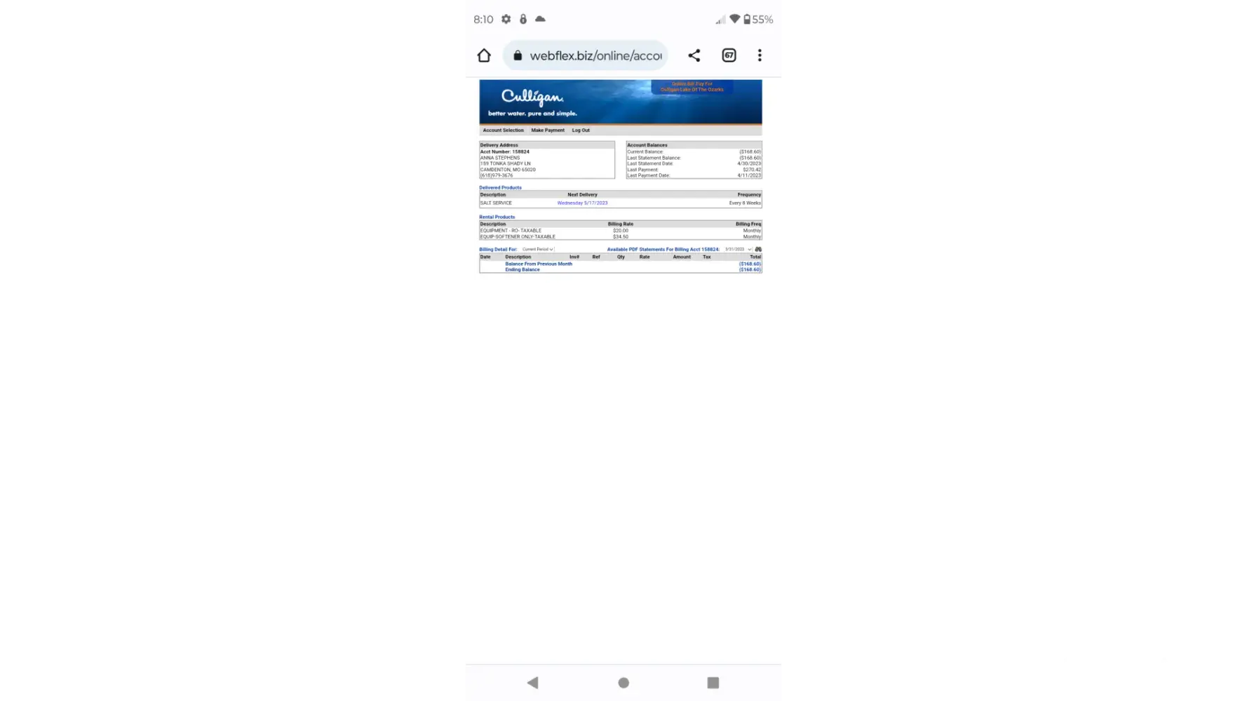 Tried to tell me that I hadn't been paying for my softener all year when they hadn't been charging me for a filter, then after we look up the filter contract it's 75 a year and they start trying to charge me $75 a month but they are actually trying to charge me $100 a month I call corporate and they tell me it's a franchise and they can't do anything to make sure that my mathematically incorrect bill is fixed. The general manager was parked outside my house after he threatened to take myself because he couldn't figure out how to take care of the filter problem the only reason he knows where I live is because I'm a client. I'm going today to get my money back that I paid ahead of time and if it's not corrected I'll file a police report then head straight to the courthouse to file pro se against Culligan. a Representative of a franchise still represents your name it's not their responsibility for you to make sure that they act accordingly to good business on your behalf.