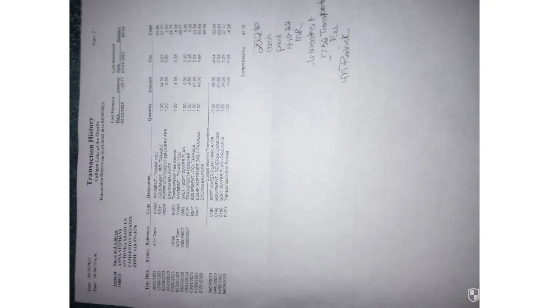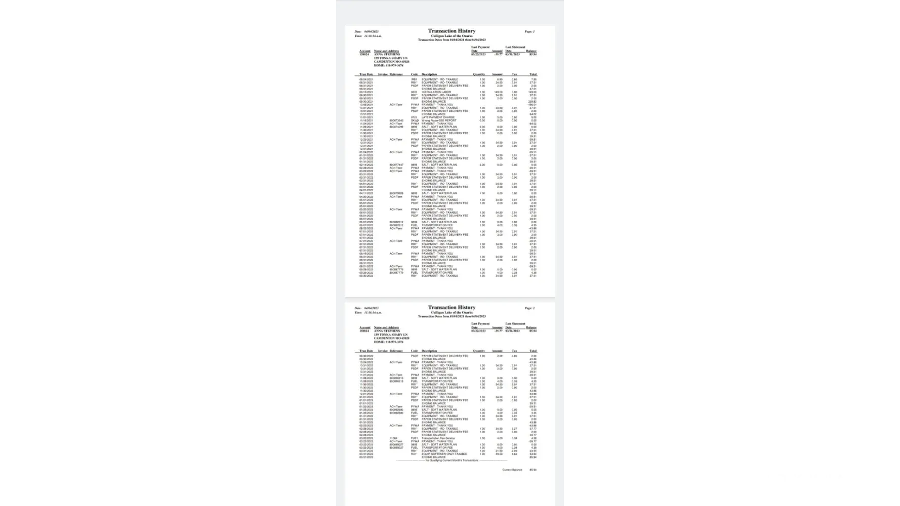 Hi We have an automatic rental for culligan water softener and rust buster system. Our service dates for softener to be filled are approximately every 6 weeks On June 21st, 2023 culligan filled softener with 2 bags of duracube. Our usually pattern is 3 bags than 2 bag fill consistently over past two years (approximately). On august 16th, culligan came...