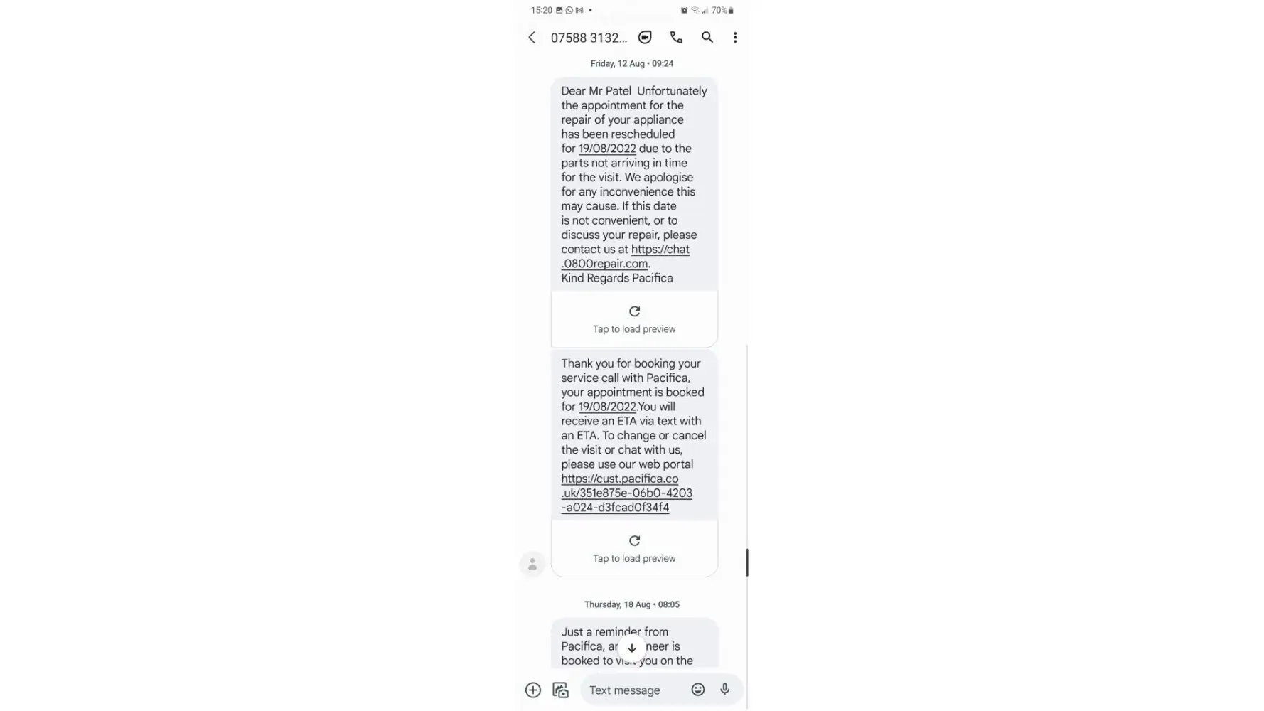 After many more phone calls in-between, some unsuccessful, and further attempts by us to get this dire situation resolved, an engineer came to us from Repair Care, sent by Currys on August 23rd.