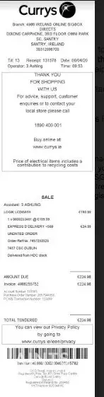 I recently bought a new cooker online from Curry's. I expected a receipt by email which never arrived. I did get txt messages from their delivery team giving me an order number and delivery date. I contacted their customer services to try and get a receipt only to find I couldn't email or phone them. I had to chat to an advisor online.