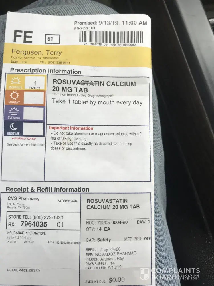 Picked up medication at drive up received only a 14 day supply insurance was billed for 90 day supply. Now I'm out of meds and store in Borger TX refuses to refill. Said they have video of me picking up meds. I didn't deny picking up meds just that it was only 14 days when it was supposed to be 90 day supply. Don't believe that camera is x-ray vision showing 90 pills.